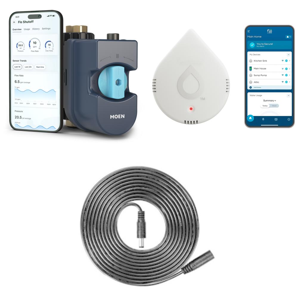 Meet Flo by Moen, the all-in-one security system for your home water. The best way to avoid water damage is to prevent it. Backed by years of product development and industry leading technology, the smart water system detects and stops leaks. From your toilet, shower or faucet, to the pipes in your foundation and behind your walls, monitor all of them so there's no surprises on your water bill or catastrophes when you come home from vacation.