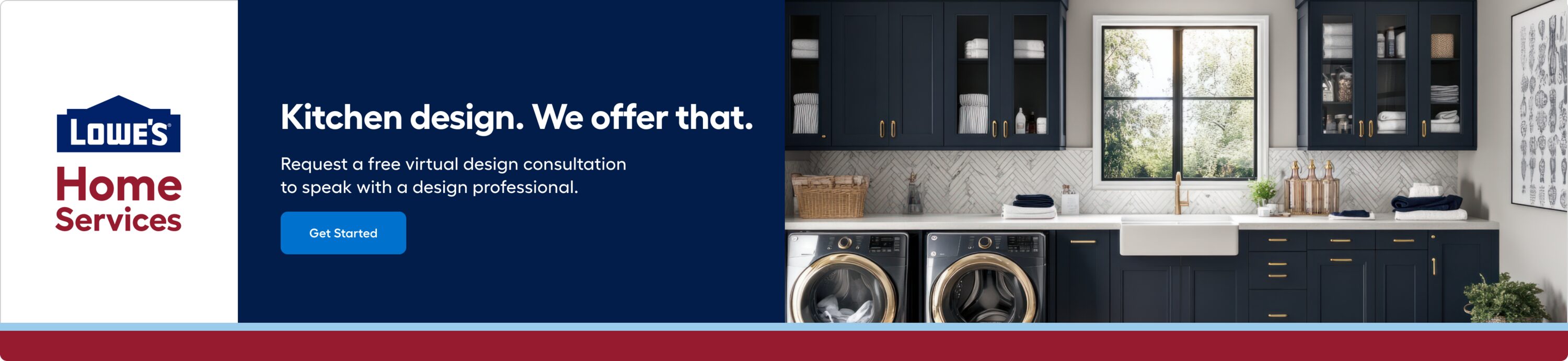 From redoing the layout of kitchen cabinets and appliances to installing new kitchen cabinets or kitchen countertops, your remodel can bring a fresh look and a modern update to a dated space. Our project specialists will work with you and provide kitchen renovation ideas that'll bring your dream kitchen to life. And with Lowe’s great deals on appliances, countertops, cabinets and hardware, you can keep your kitchen remodeling cost within your budget. Shop online or stop in at your local Lowe’s and get started on your dream kitchen today.