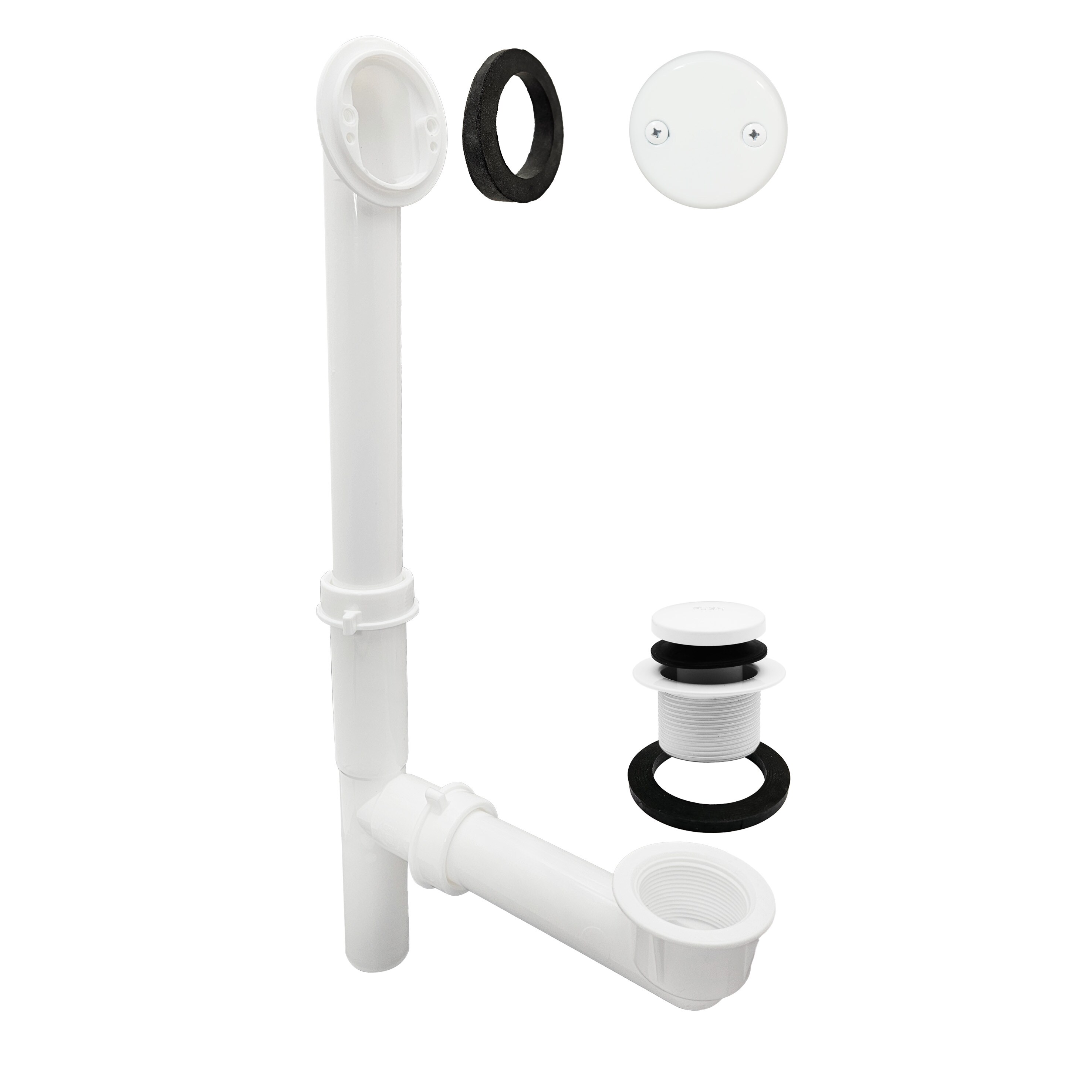 This poly insert style, Tip-Toe bath waste uses poly ferrules and slip joint nuts, to easily conform to tub overflows of varying sizes. Insert style drain makes assembly a snap. Comes with overflow and stopper in many different finishes to meet any decor. 14 inch rough-in.