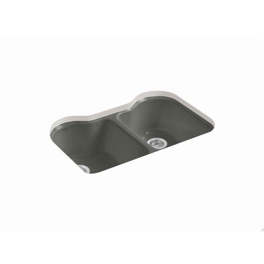 KOHLER Hartland 22-in x 33-in Thunder Grey Double-Basin Cast Iron Undermount 5-Hole Commercial/Residential Kitchen Sink