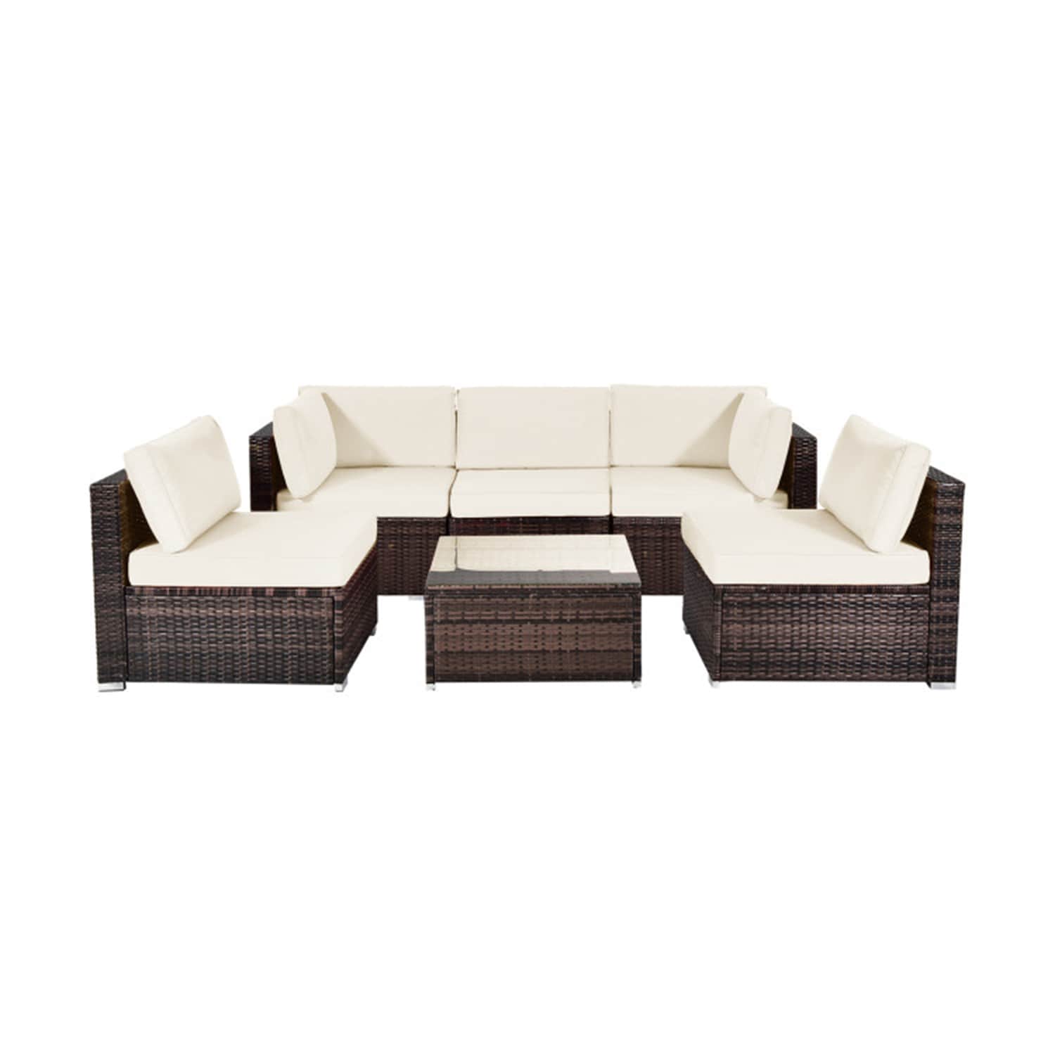 Mondawe Rattan Outdoor Sectional with Beige Cushions and Steel Frame