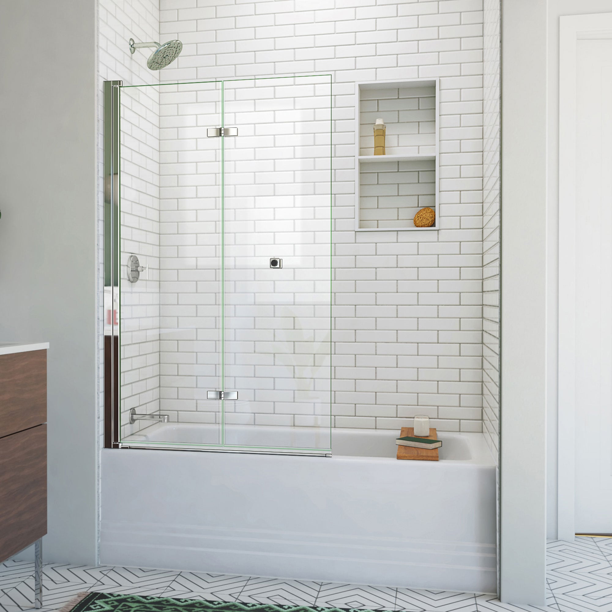 DreamLine Aqua-Q Fold Chrome 36-in W x 58-in H Frameless Bifold Bathtub Door
