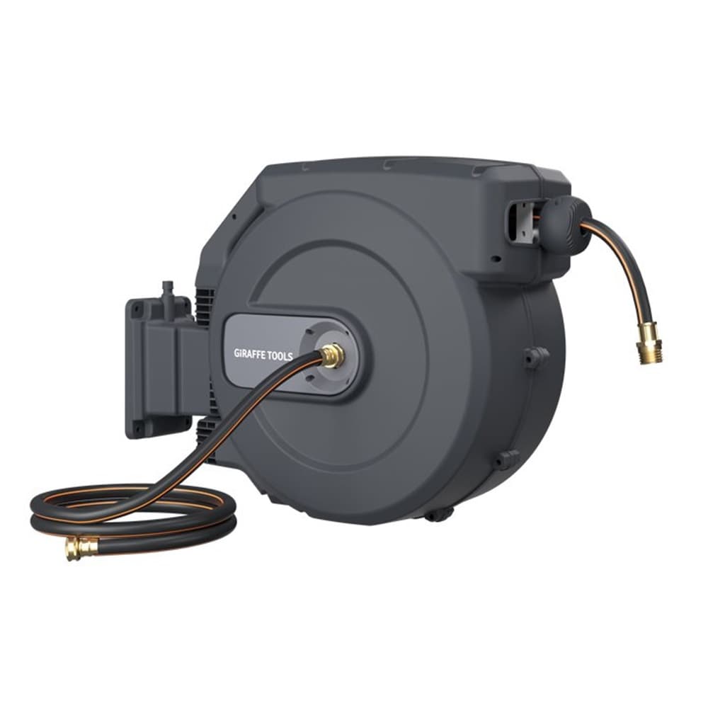 A wall-mounted retractable hose reel provides you with a one-stop watering service. Always prepared to use it anywhere, anytime.