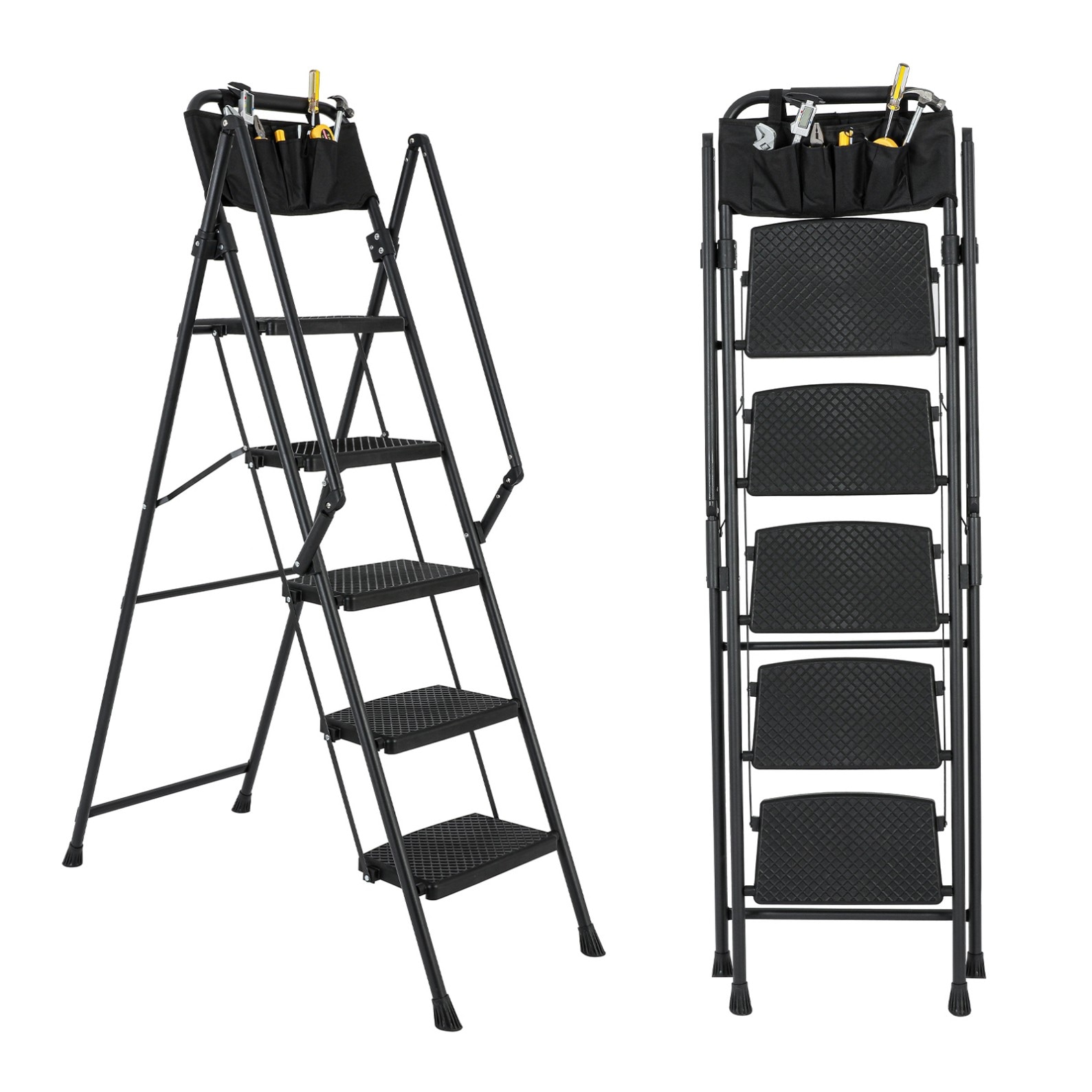 Ample Storage Capacity: The storage bags offer extra storage space at heights, allowing you to store tools conveniently, reducing the need for frequent trips up and down the ladder and improving overall work efficiency.