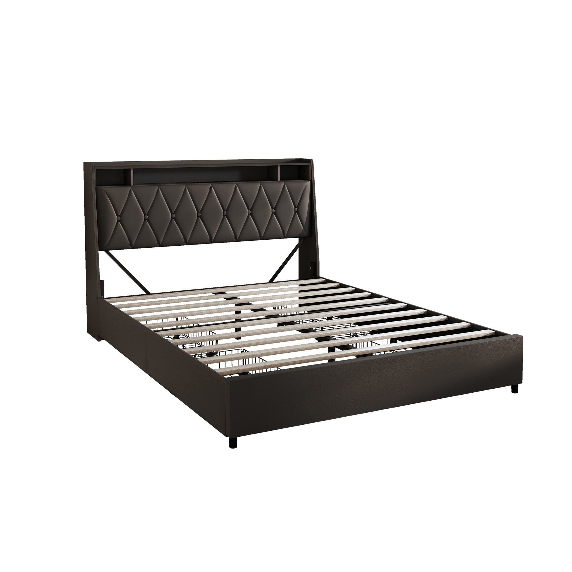 Bybafun Full Black Metal Bed Frame Storage with Headboard