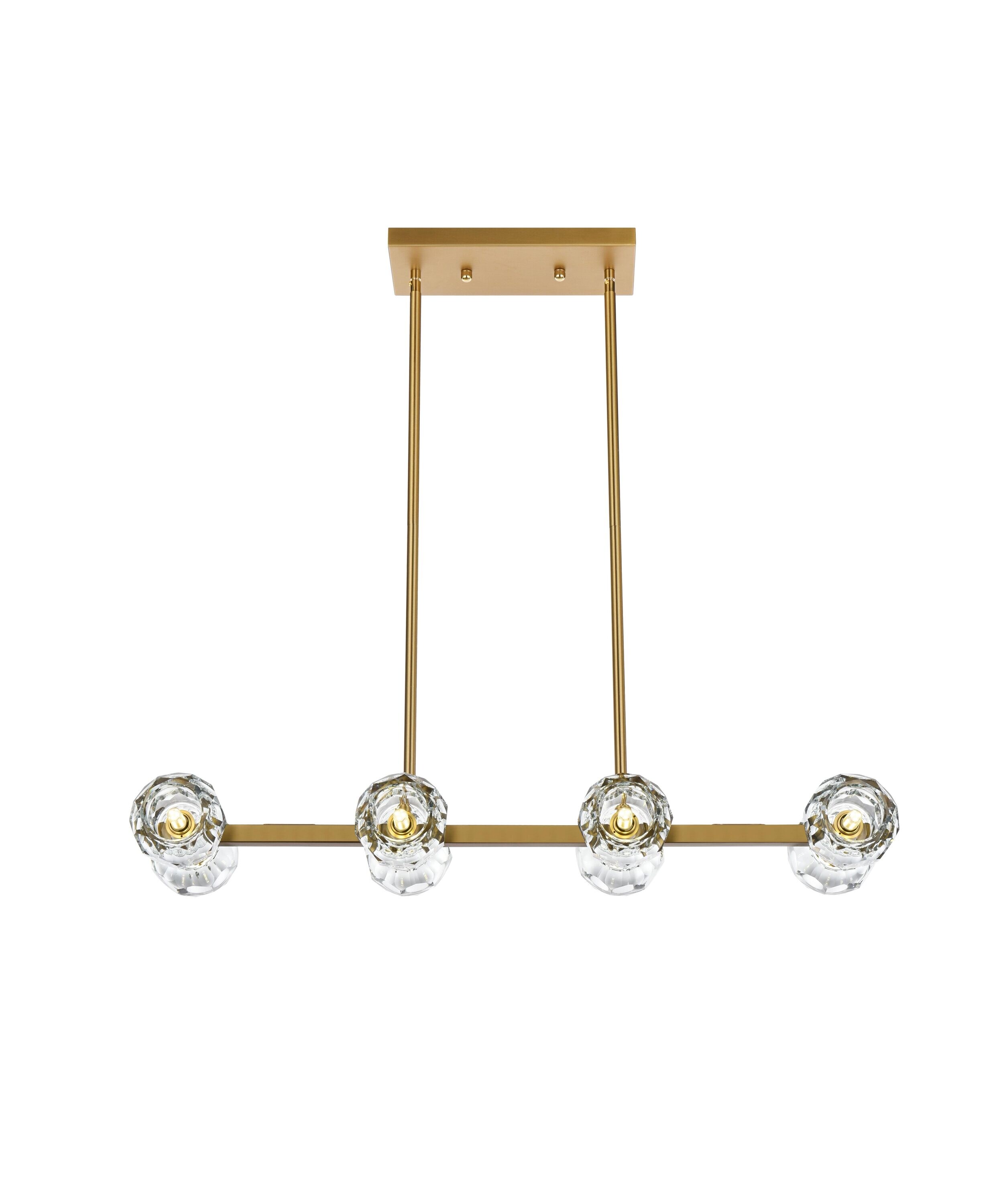 Presenting a pendant light that radiates sophisticated elegance. Eight lights, each adorned with faceted crystal glass shades, emit a luxurious and dazzling glow, creating a timeless atmosphere of charm. The durable iron base adds an industrial touch to the sleek, contemporary design. With two 46-inch rods for stability and a modern aesthetic, this fixture ensures easy installation. Illuminate your space with a perfect blend of style, durability, and radiant sophistication.