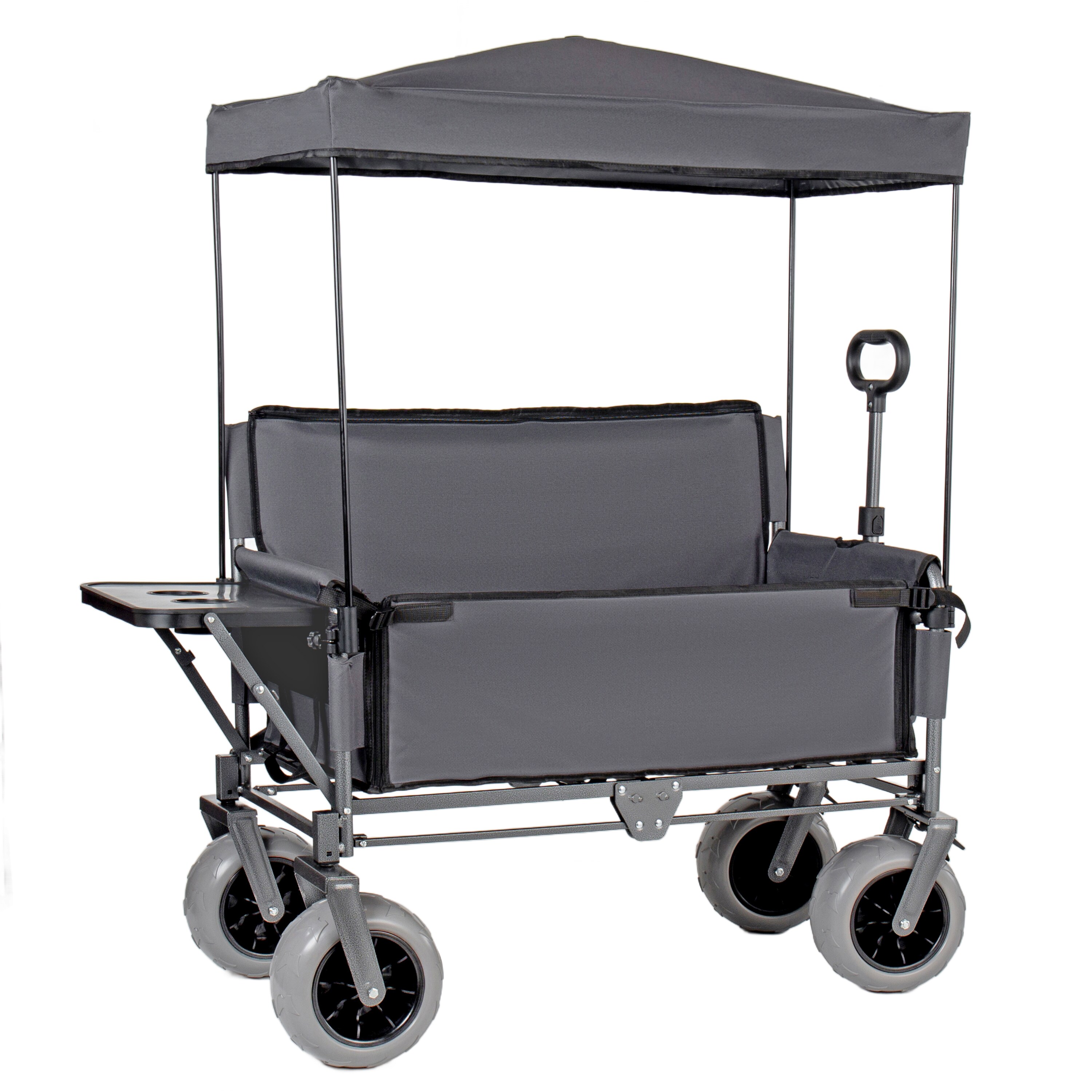 Removable Sunshade Awning Canopy: Delivers reliable shade and transforms the wagon into a comfortable sheltered space for outdoor activities.