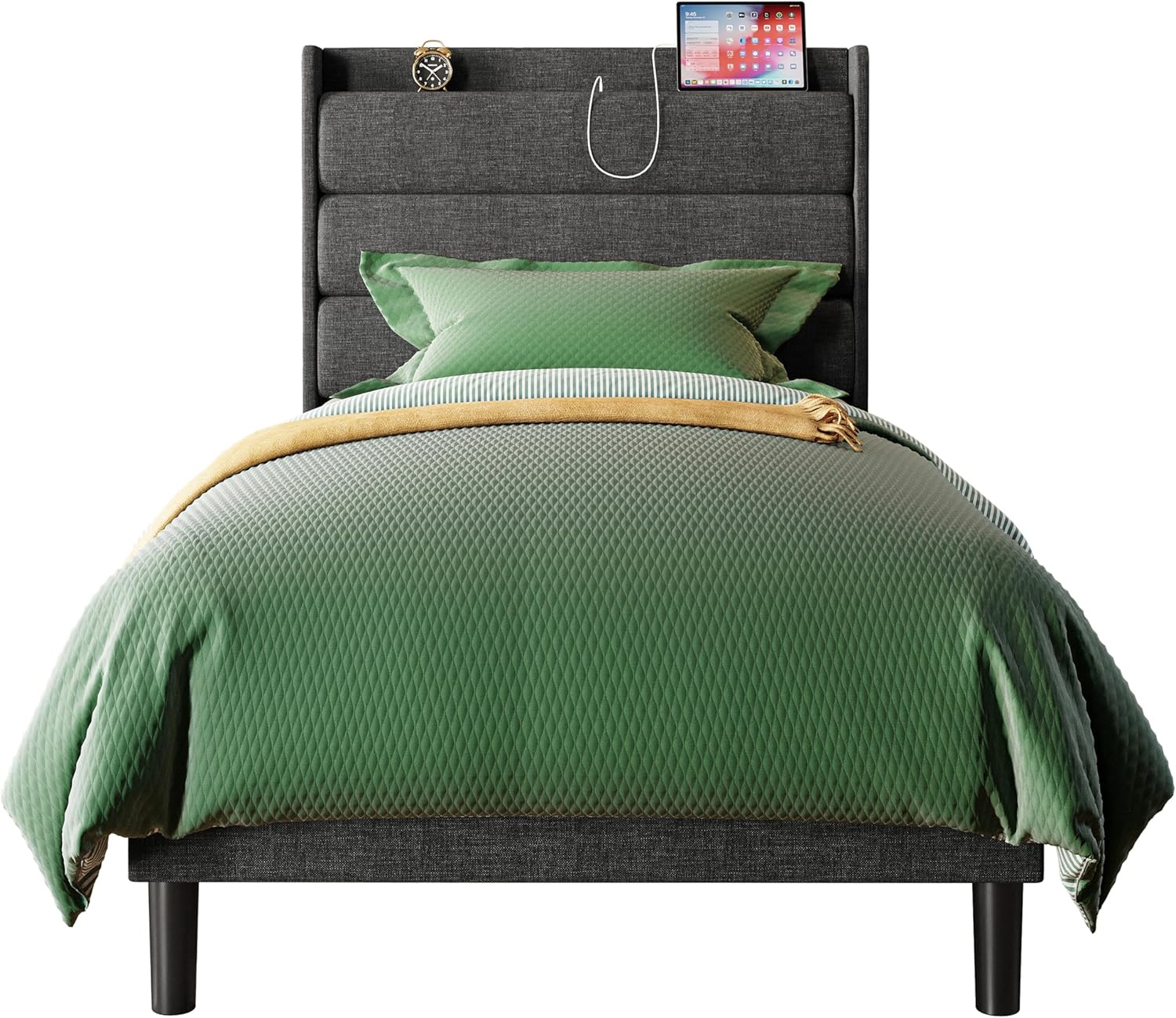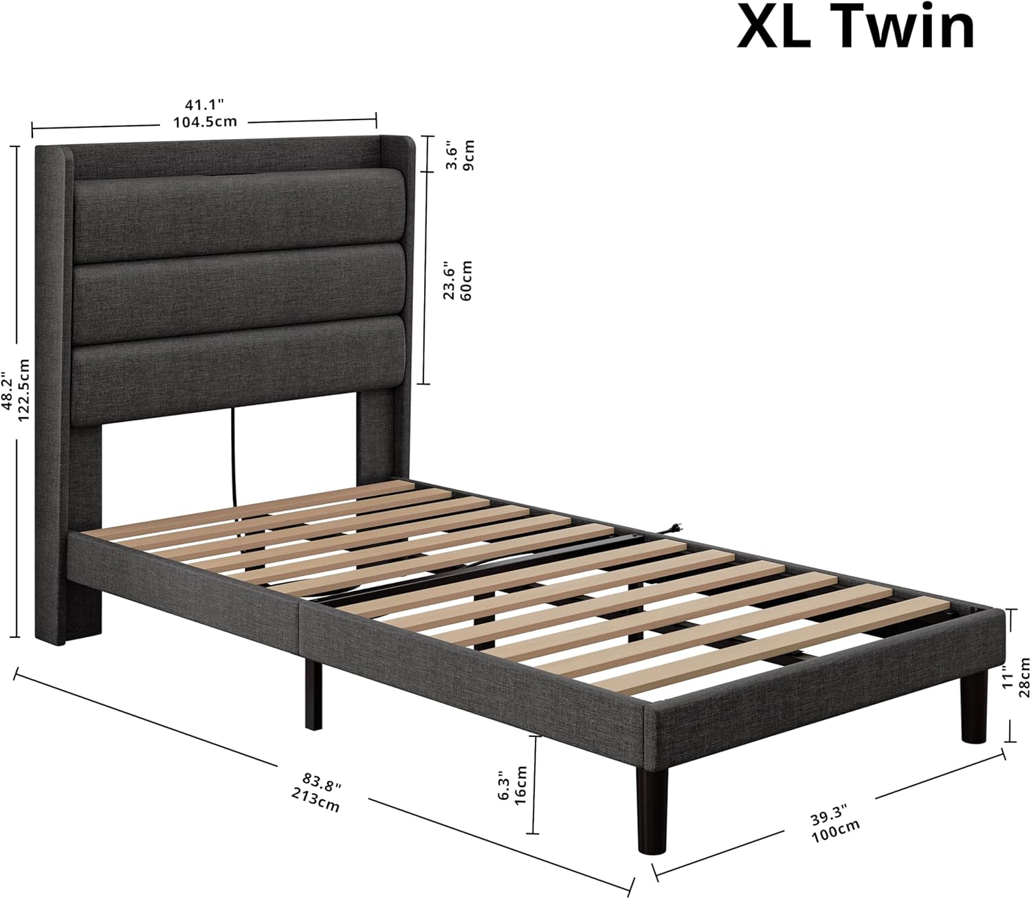 Likimio 41.1-in W Dark Gray Twin XL Bed Frames with Storage Headboard and Outlets