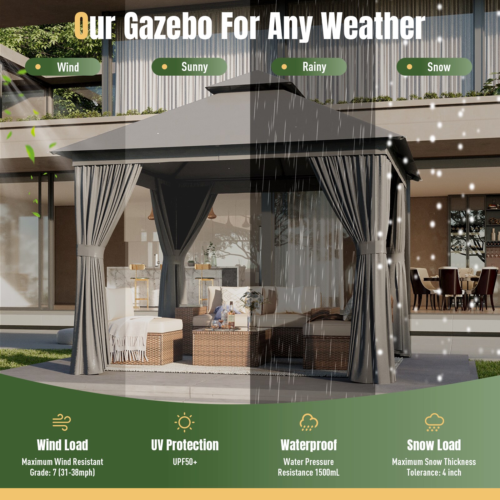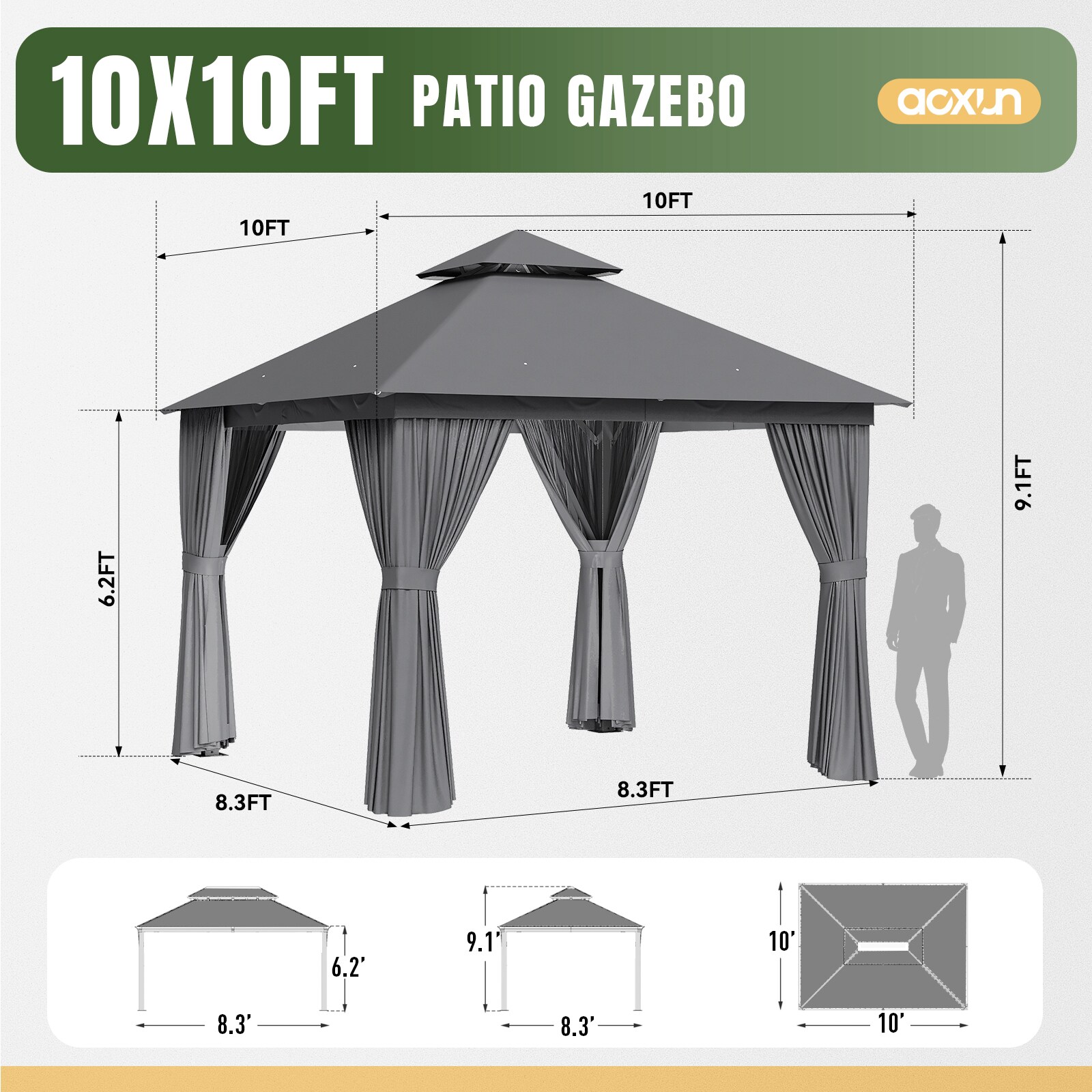 AOXUN 10-ft x 10-ft Outdoor Gazebos Gray Gazebo with Soft Top Roof (Screen Included)
