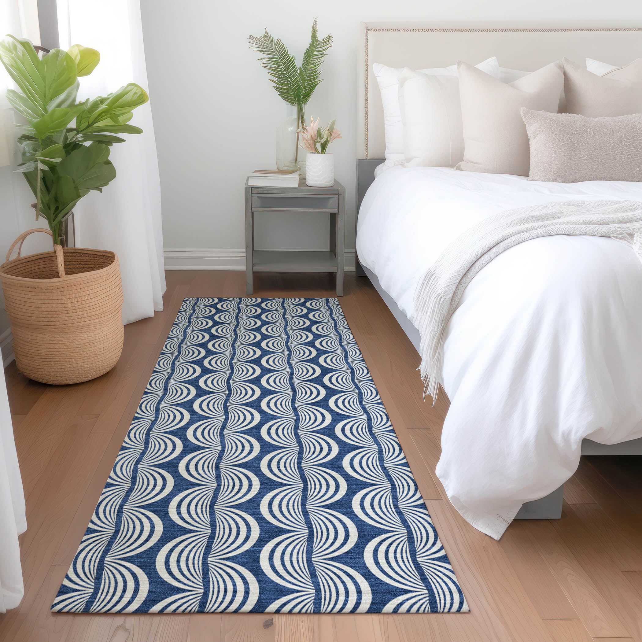 Addison Rugs Chantille ACN1055NA 2 x 7 (ft) Polyester Navy Rectangular Indoor/Outdoor Geometric Machine washable Pet Friendly Runner rug