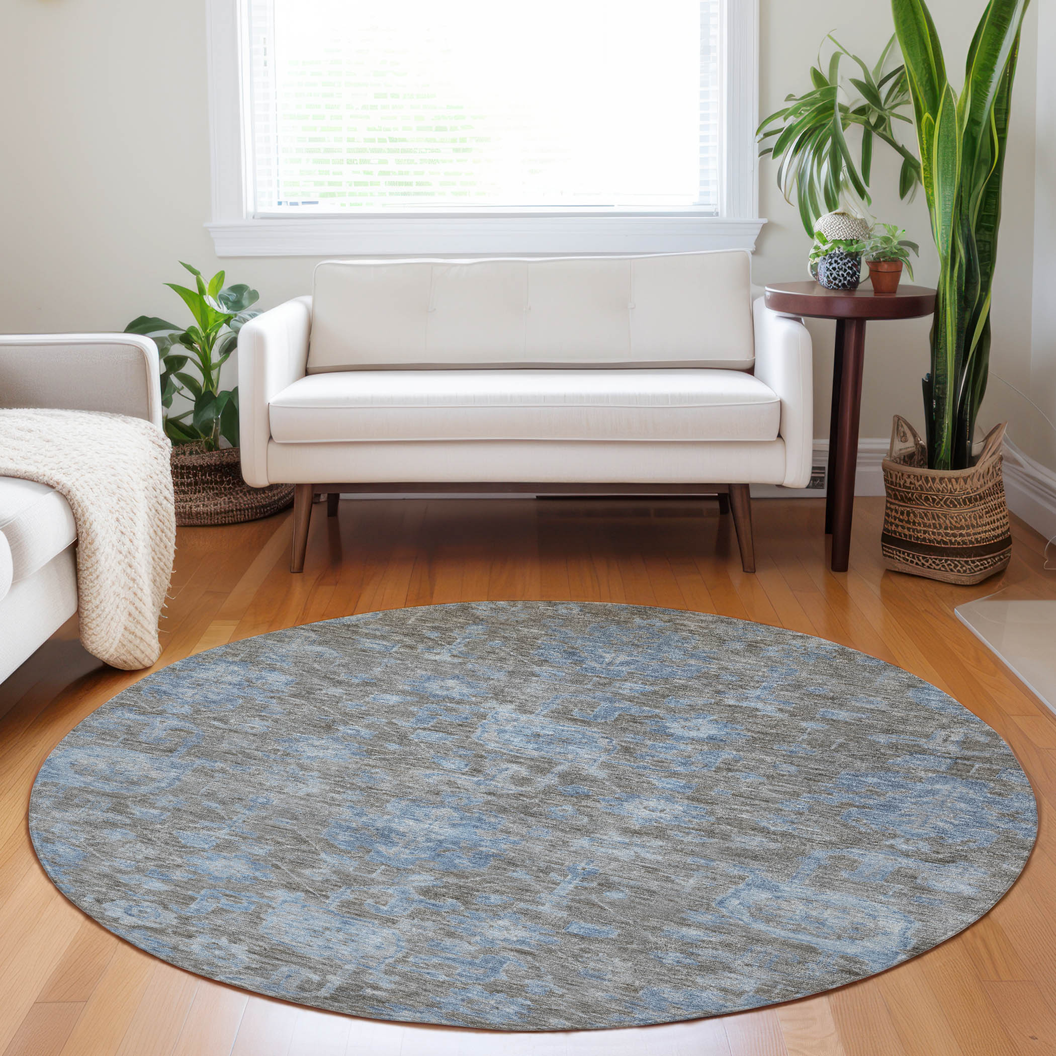 Addison Rugs Chantille ACN1376GY 8 x 8 (ft) Polyester Gray Round Indoor/Outdoor Geometric Machine washable Pet Friendly Area rug