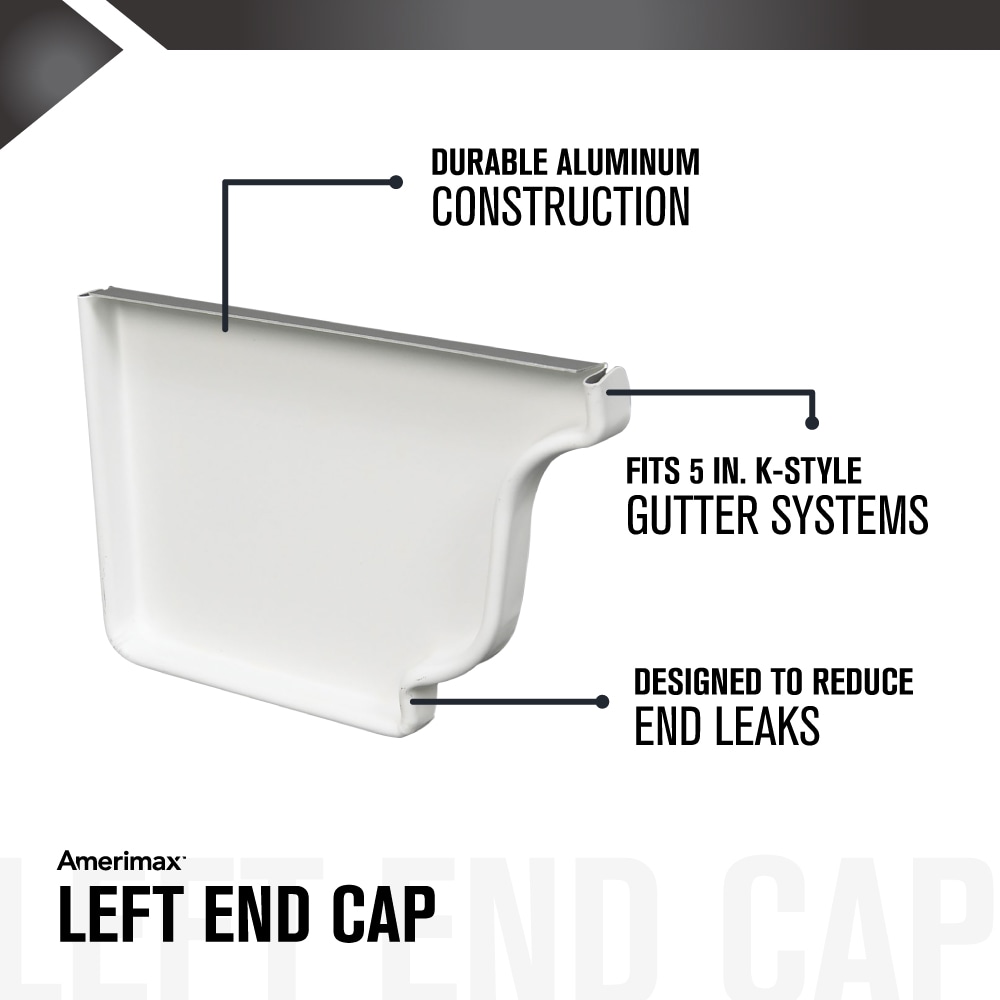 Amerimax Professional Grade White Aluminum K Style ( 0.5-in x 5-in ) Left End cap