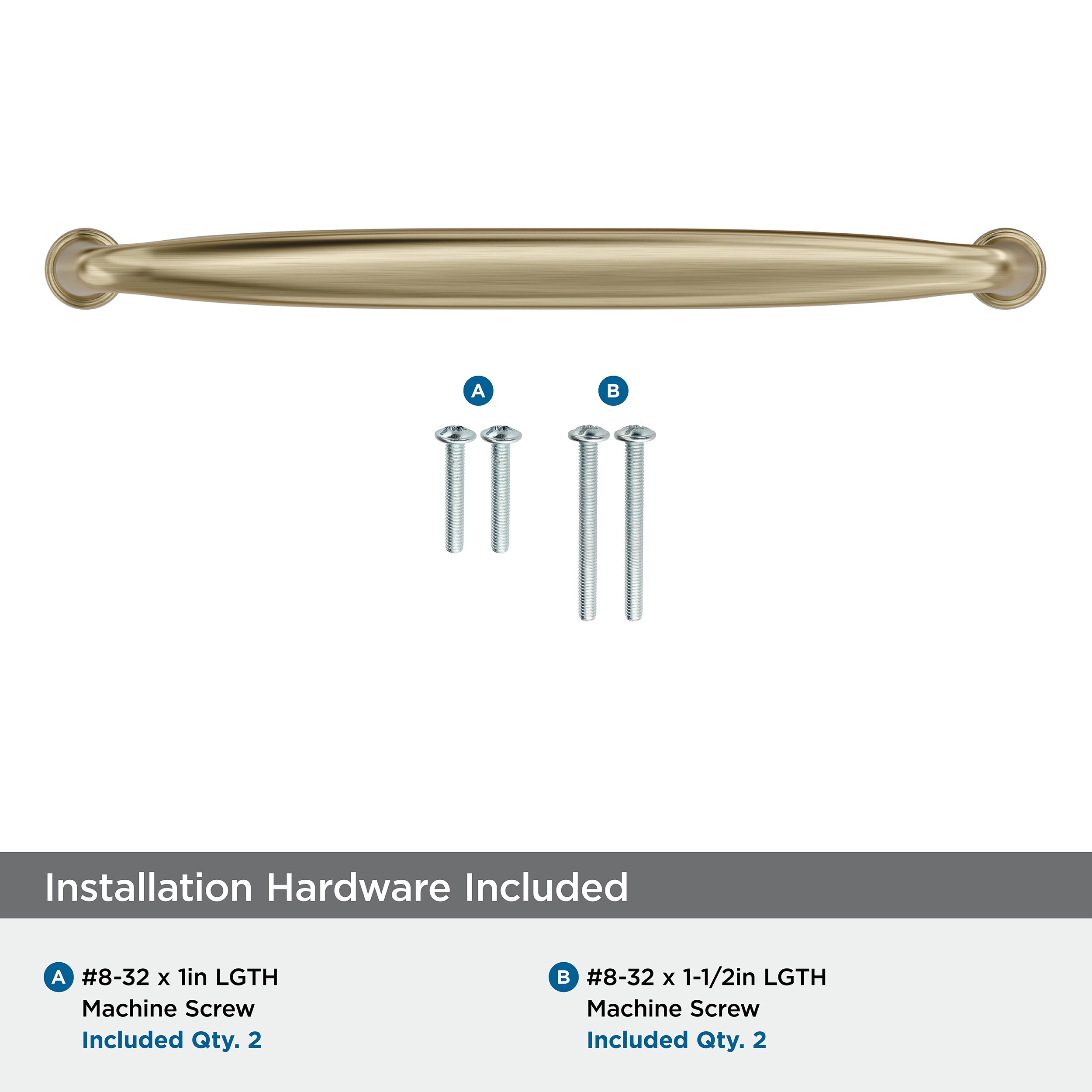 The Amerock BP53808BBZ Kane 7-9/16 inch (192mm) Center-to-Center Pull is finished in Golden Champagne. Simple appeal complements utilitarian design in the Kane collection, which creates a casual, understated look. Warm and inviting without being brassy and featuring hints of silver in reflective light, our Golden Champagne finish elevates designs with enviable versatility. Use for a soft and elegant touch on lighter finishes or as a contrasting pop against darker finishes. Founded in 1928, Amerock’s award-winning home solutions including decorative and functional cabinet hardware, bath accessories, decorative hooks and wall plates have built the company’s reputation for chic design accessories that inspire homeowners to express their personal style. Amerock offers a variety of styles and finishes at affordable prices that add the perfect finishing touch to any room.