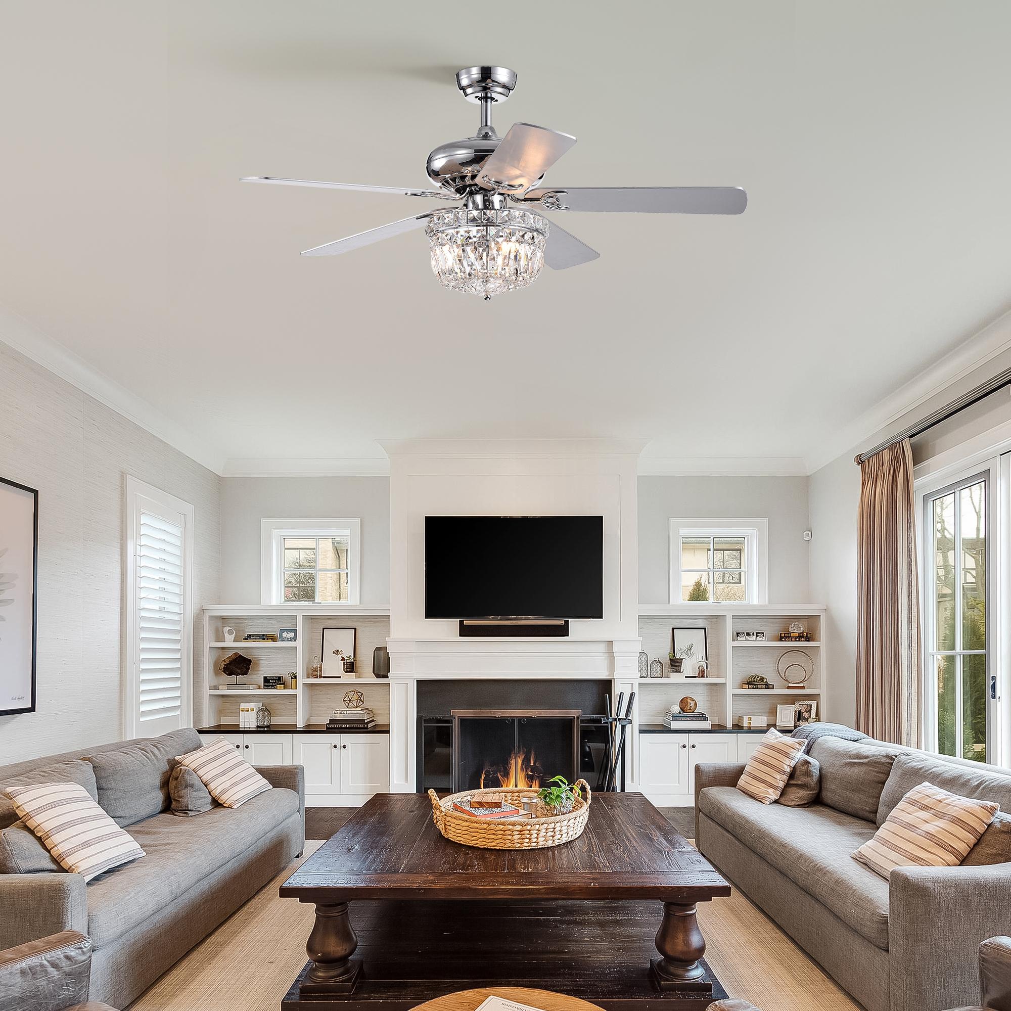 Bayfeve 52-in Outdoor Chrome with Plywood Blades Chandelier Ceiling Fan With Light - Remote Included ( 5 -Blade )