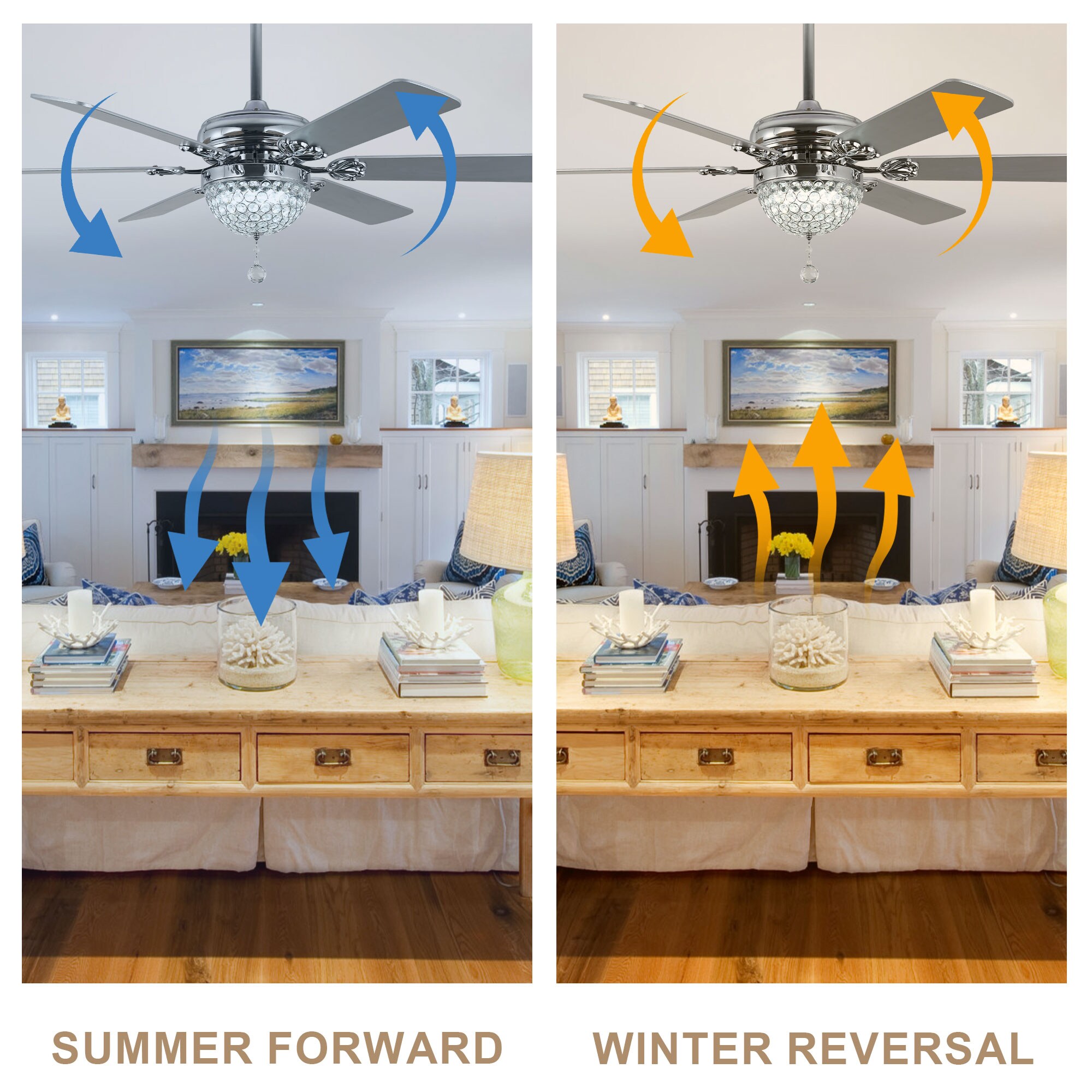 Bella Depot Tiffany 65-in Color-Changing Integrated LED Chrome with Silver Blades Ceiling Fan With Light - Remote Included ( 6 -Blade )