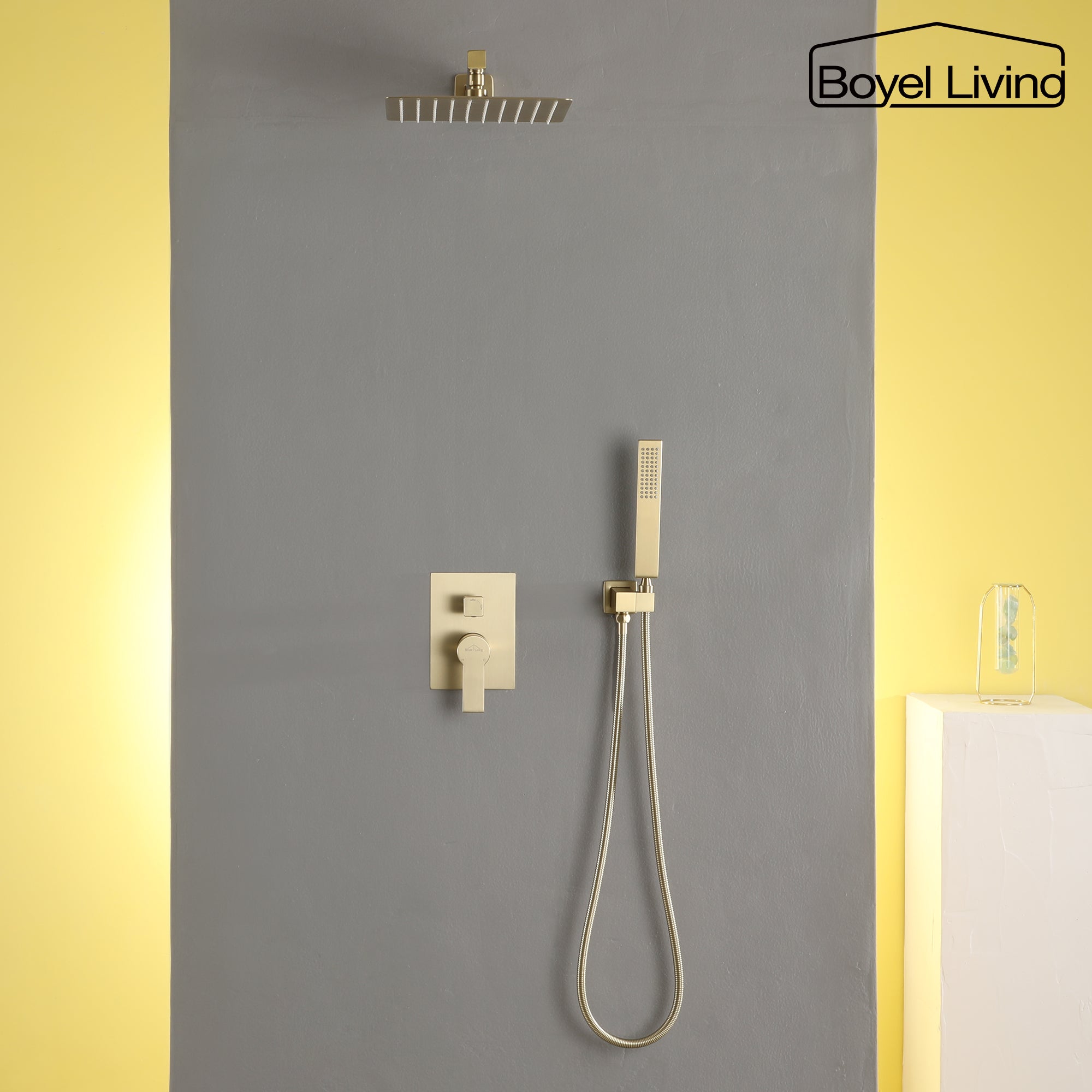 Boyel Living 1-Spray Patterns with 2.5 GPM 10 in. Wall Mount Dual Shower Heads with Pressure Balance Valve in Brushed Gold