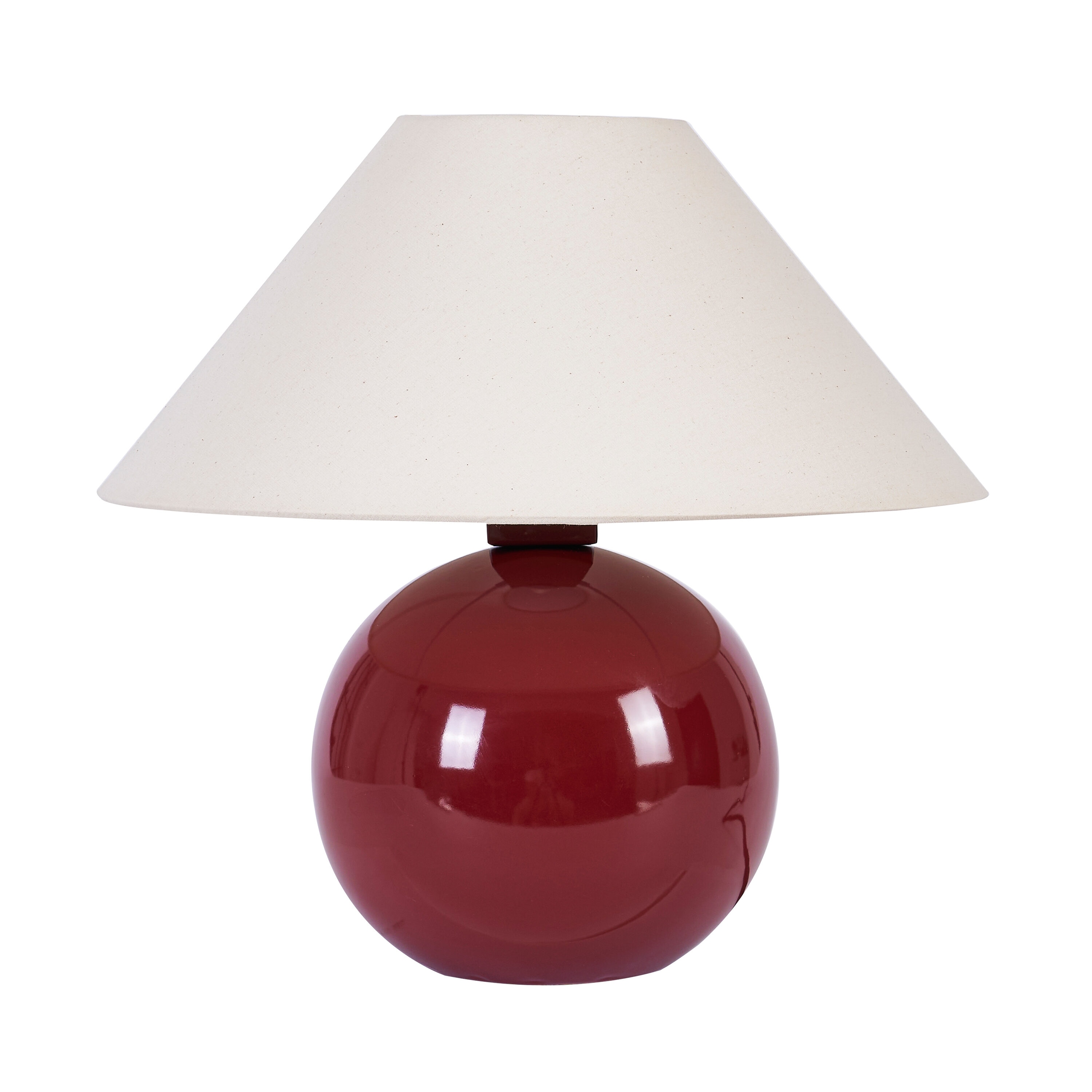 Glossy Ceramic Globe Base with Cream Cotton Empire Shade
