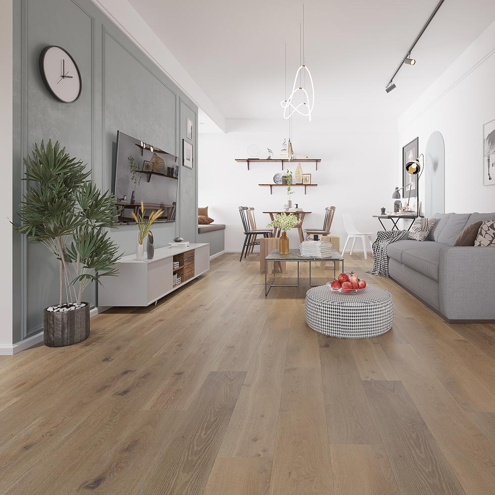 BuildDirect (Sample) Grand Width Riverbed European white oak Water Resistant Wirebrushed Engineered Hardwood Flooring