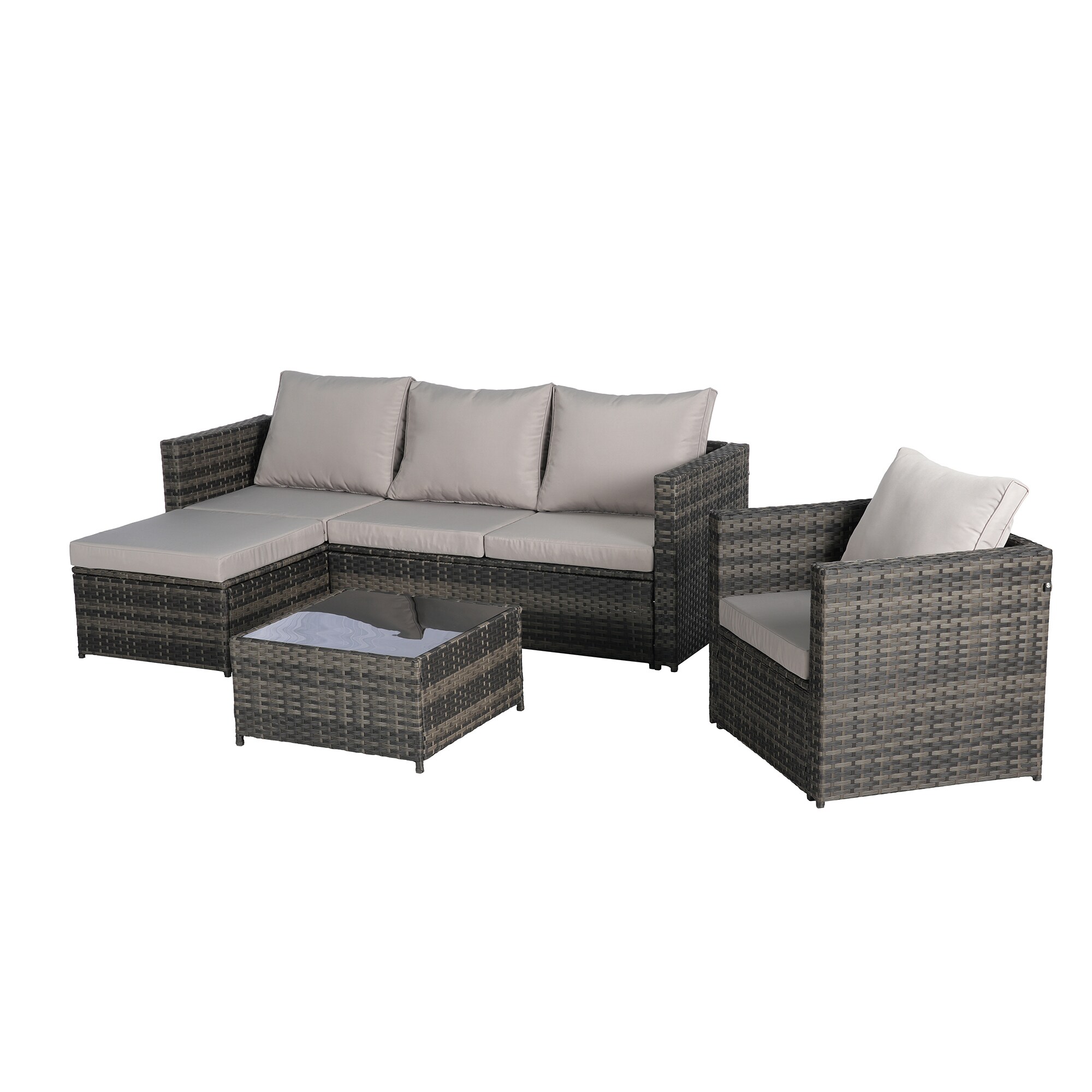 Bybafun 4 -Piece Wicker Patio Sofa Conversation Set with Gray Cushions