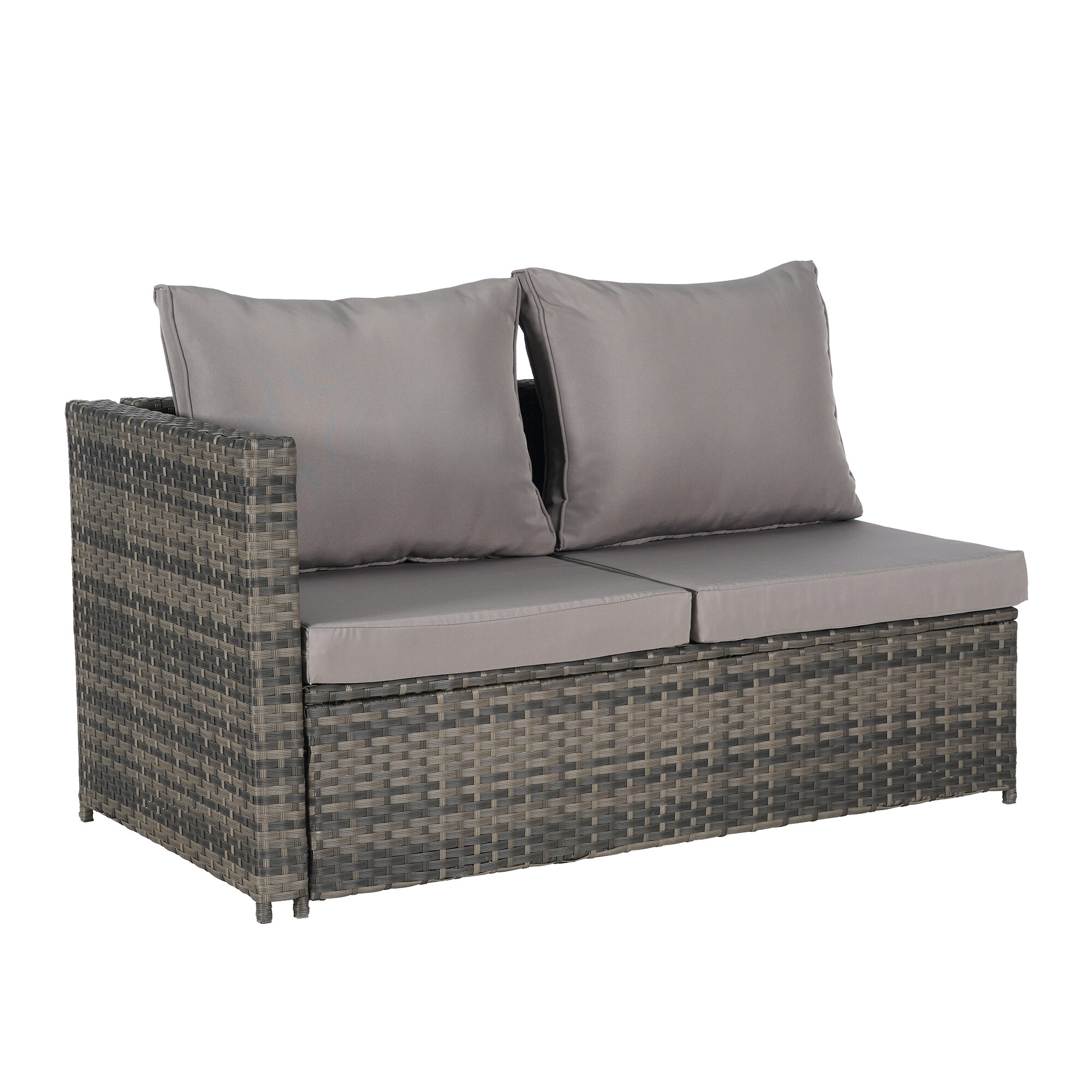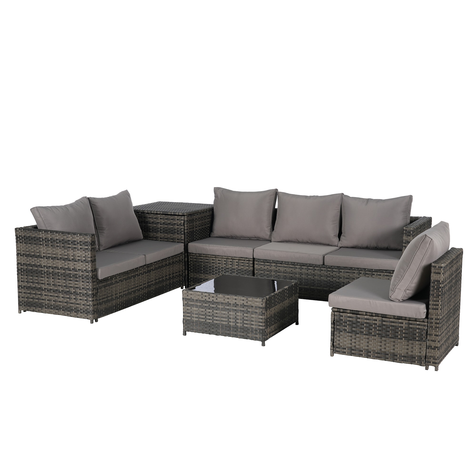 Bybafun Wicker Outdoor Sectional with Gray Cushions and Wicker Frame