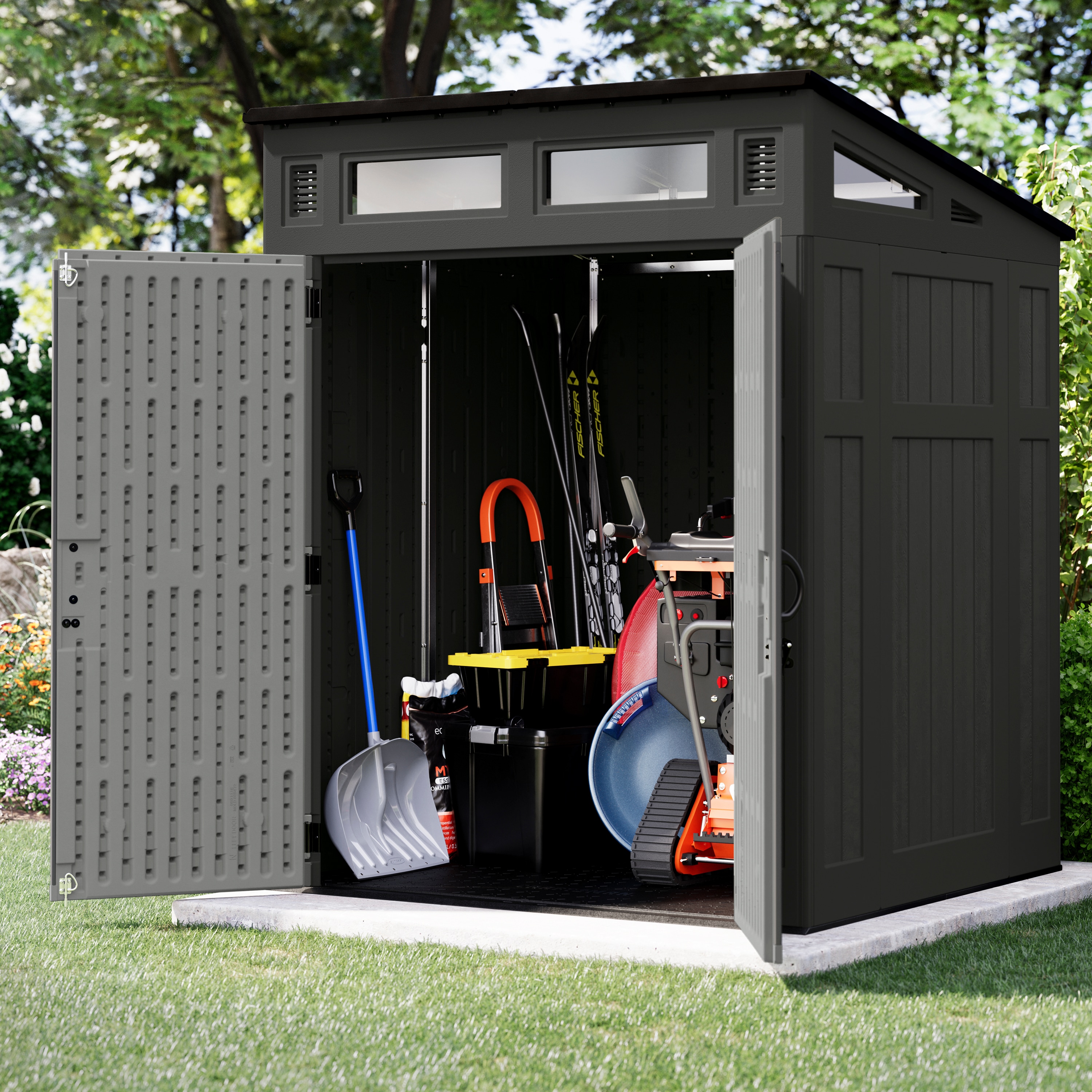 Your stuff will thank you with this CRAFTSMAN® Vertical Storage Shed. This shed offers a great solution for those with a smaller space and big storage needs. Constructed using easy-to- maintain, long-lasting, multi-wall resin panels specifically designed for strength and durability. Perfect for storing long-handled tools, gardening gear, supplies, accessories, and more. With pad- lockable door handles and a reinforced floor for heavier items, you can safely store all your outdoor essentials with ease. A small space doesn't mean you have to compromise on storage!
