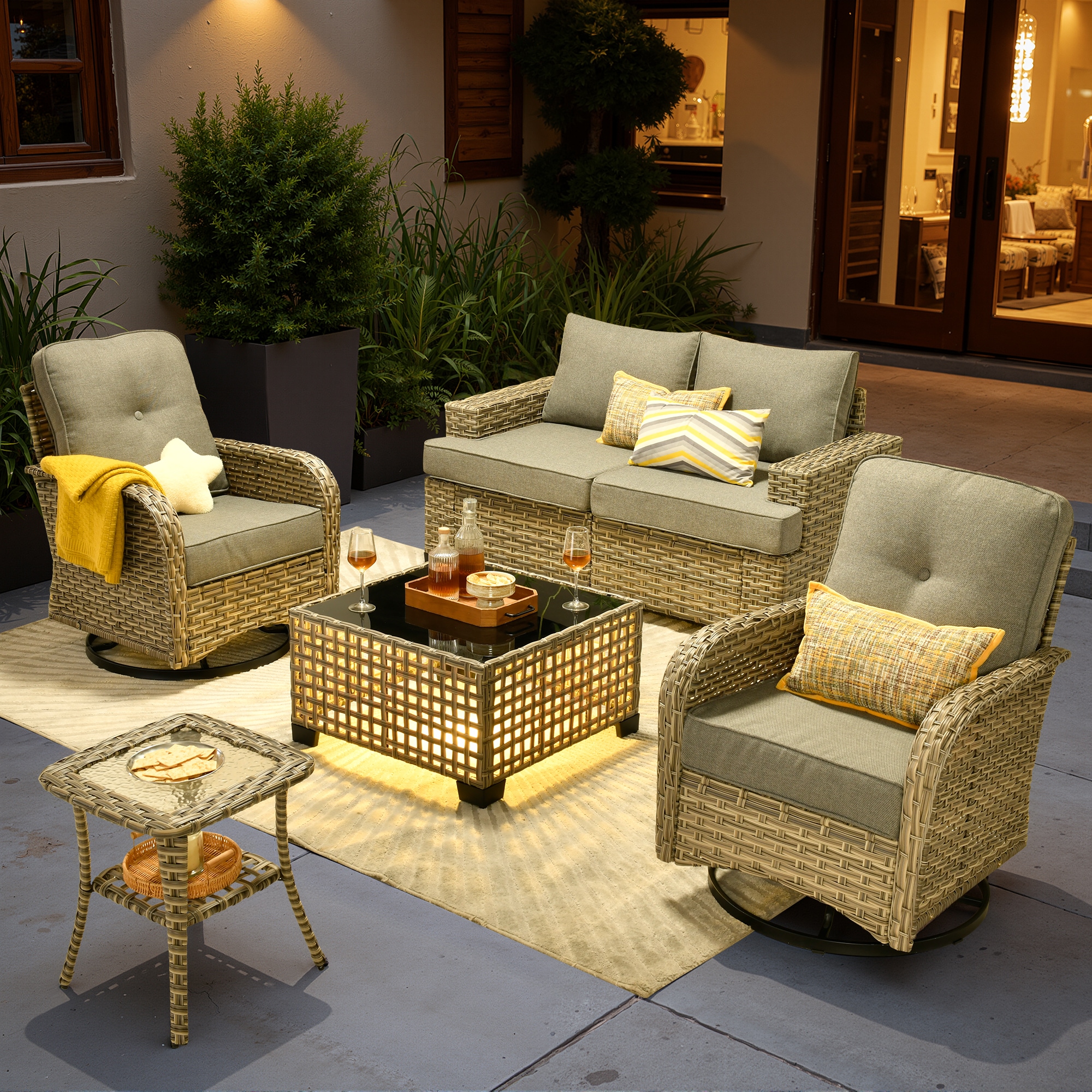 Caodoc Token Like Rattan Outdoor Sectional with Beige Cushions and Rattan Frame