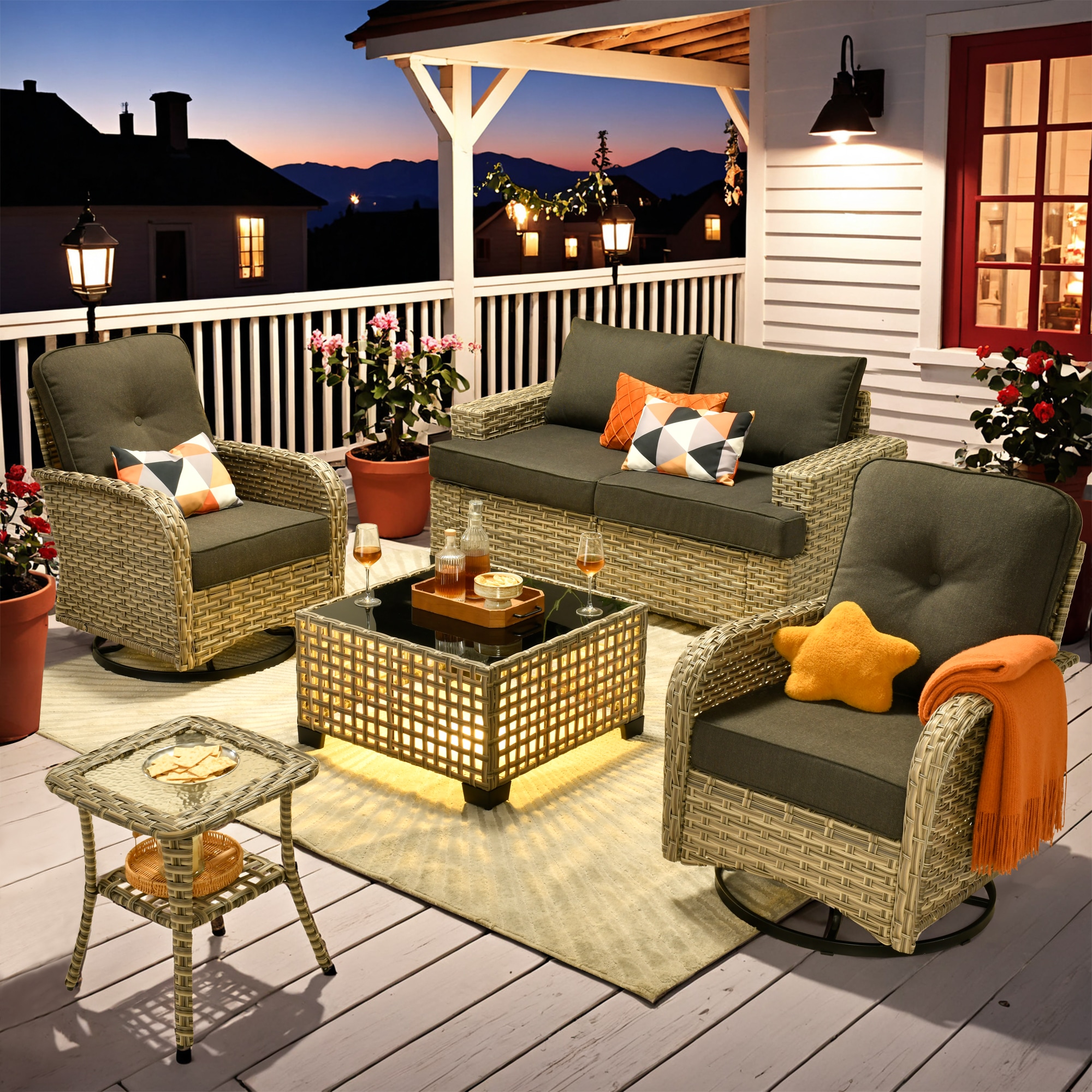 Caodoc Token Like Rattan Outdoor Sectional with Black Cushions and Rattan Frame