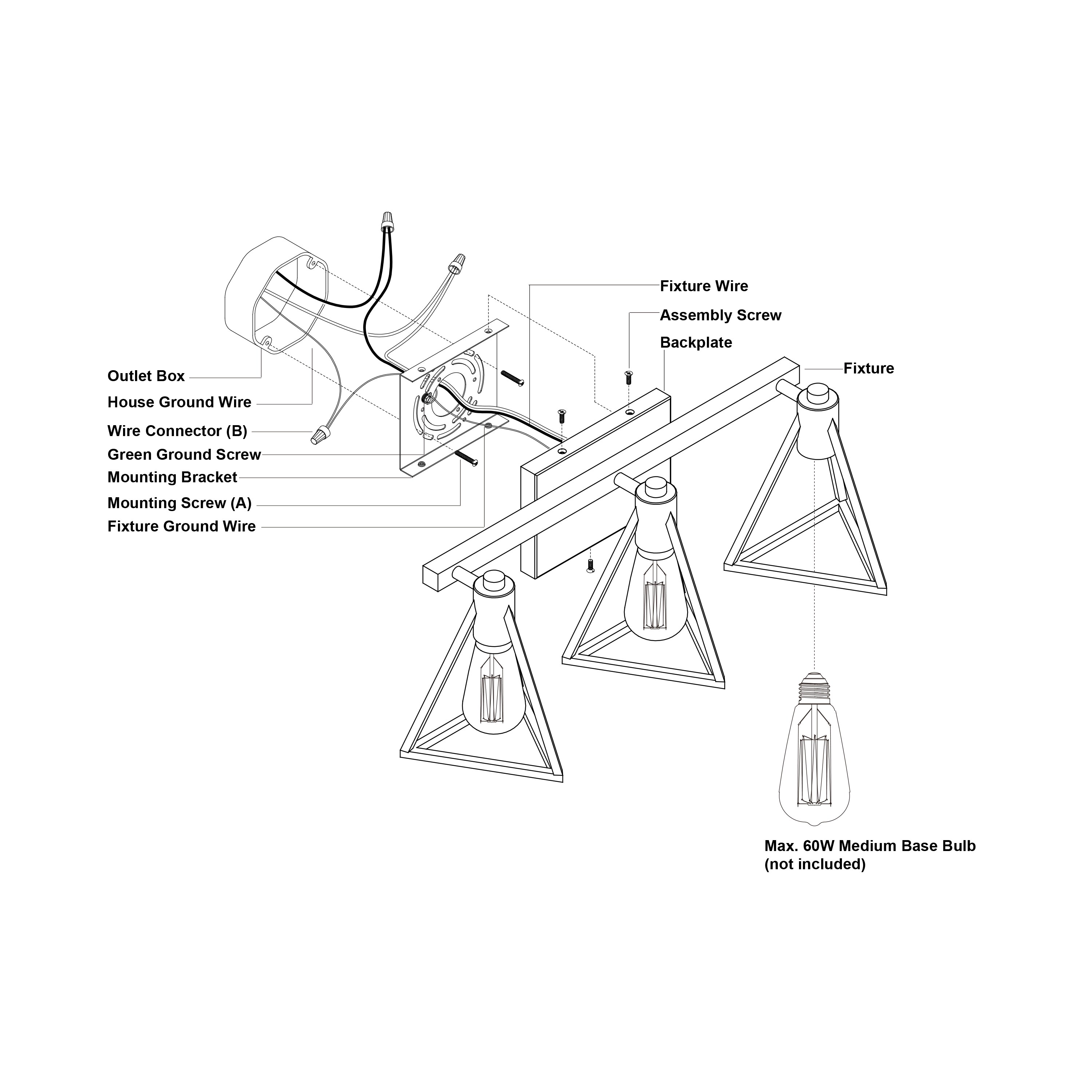 - Uses 3 x 60 watt E26 medium base bulbs (not included); LED compatible