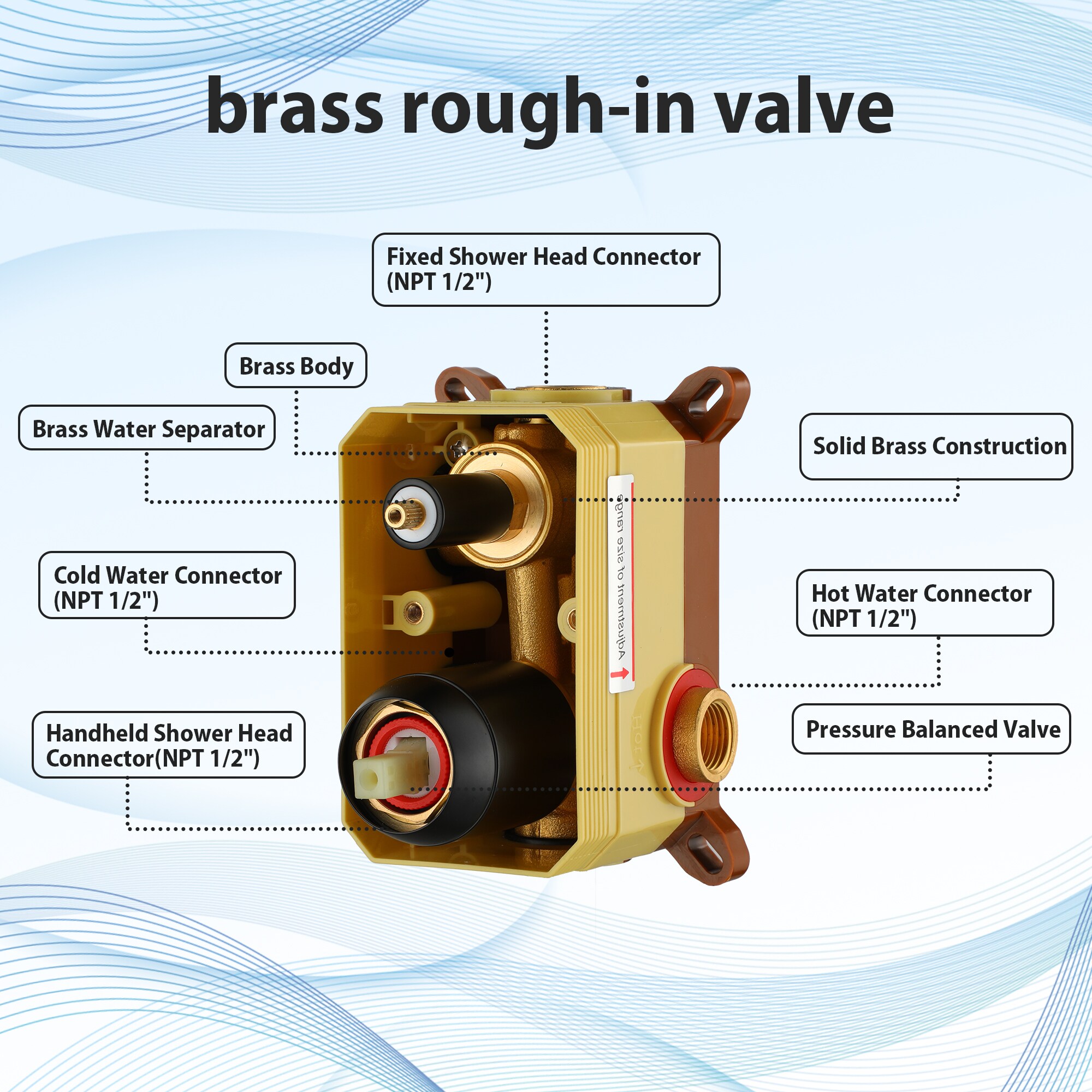 Experience peace of mind with our brass valve, featuring an adjustable water flow device to minimize noise and protect pipes from bursting, all crafted from high-quality, body-safe materials for long-lasting durability.