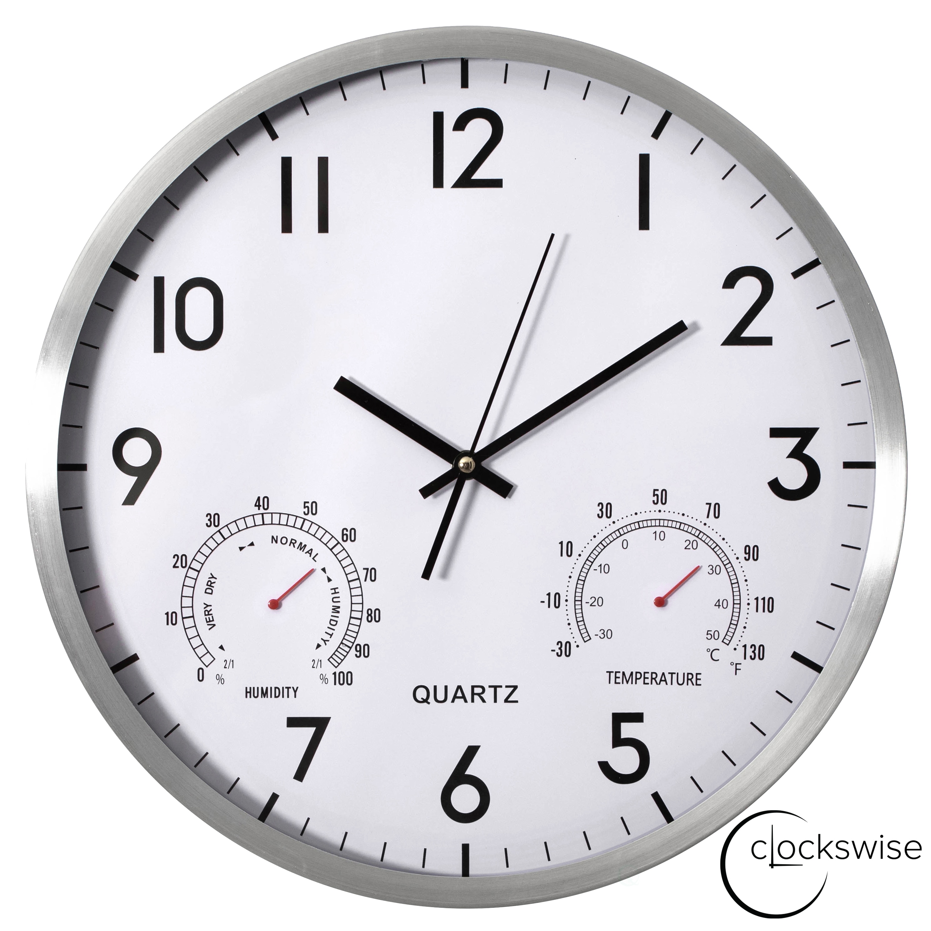 Temperature & Humidity Function: Measuring 14 inches in diameter and 2 inches in depth, this modern wall clock blends practicality and elegance with its integrated thermometer and hygrometer, enabling convenient monitoring of room conditions