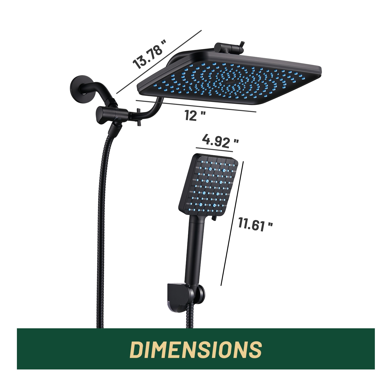 Cobbe 6.0 -Spray Black 12-in Square Rain Filtered High Pressure Shower Head with Handheld Combo 1.8 GPM