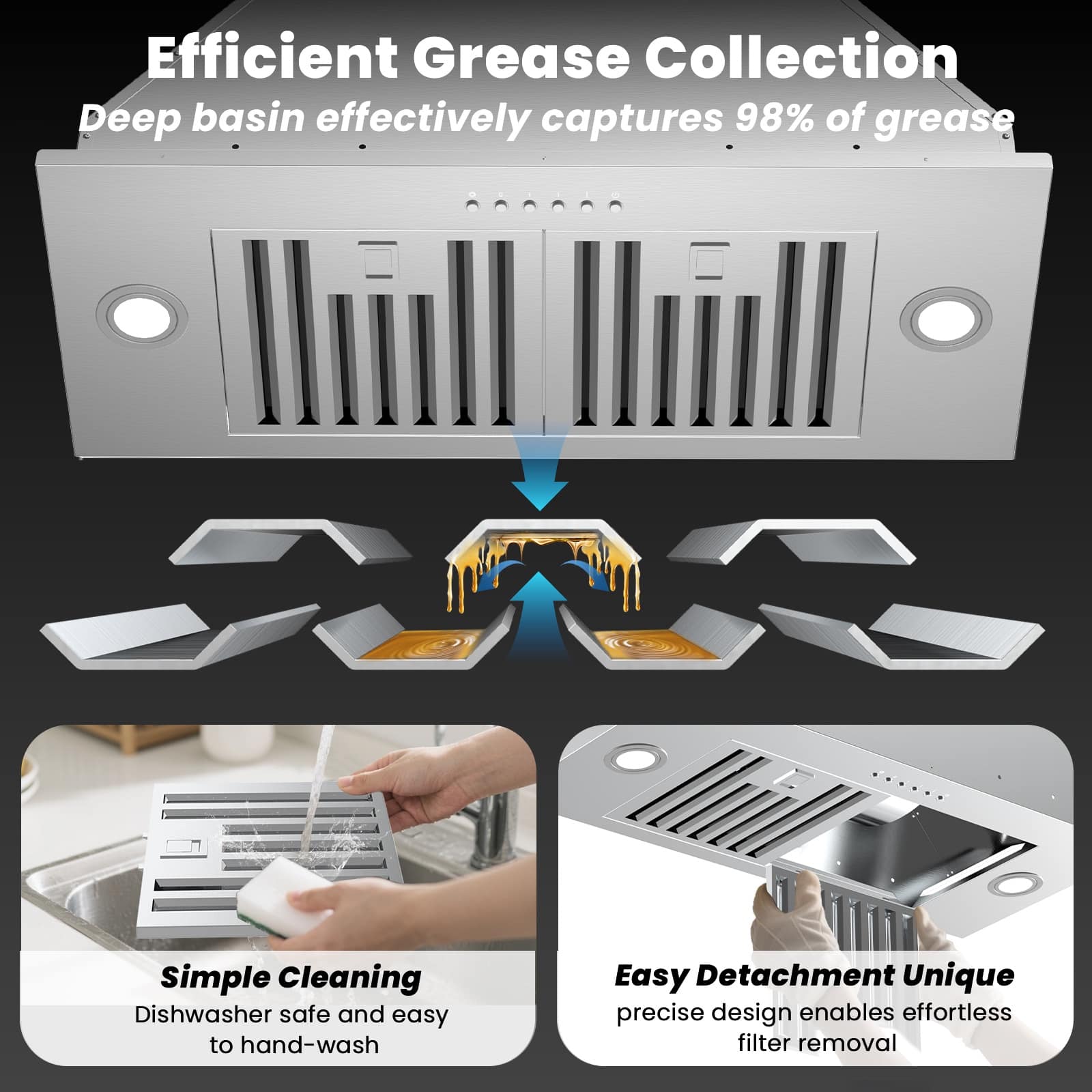 DIVAN 30in 900CFM Convertible Insert Stainless Range Hood with 4-Speed Control