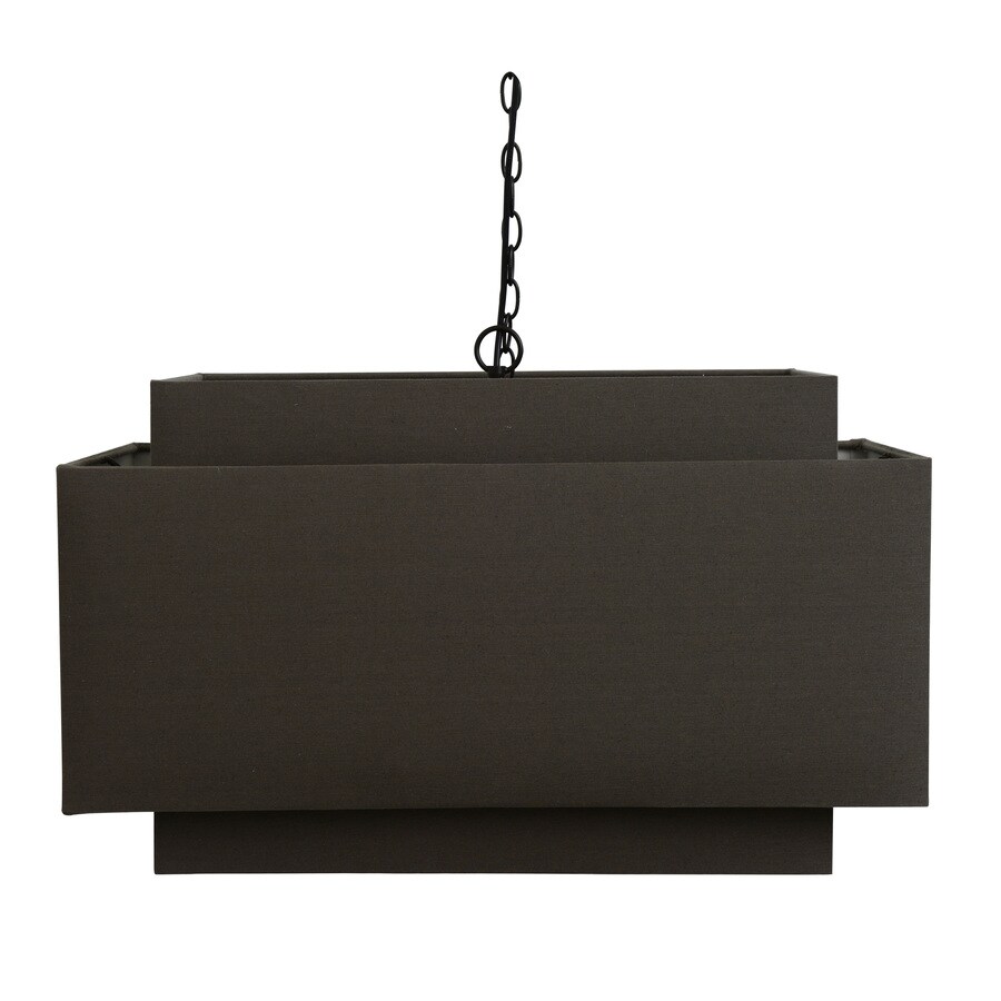 A bronze finished, 3-dimensional structure adds depth to the rich dark gray fabric shade