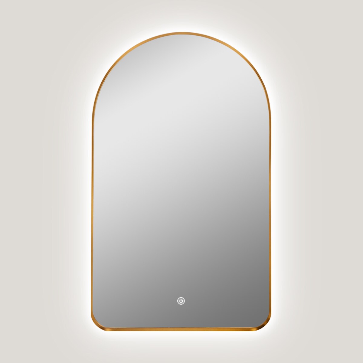 Decor Wonderland 23.6-in x 39.5-in Framed Arch LED Lighted Fog Free Bathroom Vanity Mirror ( Gold )