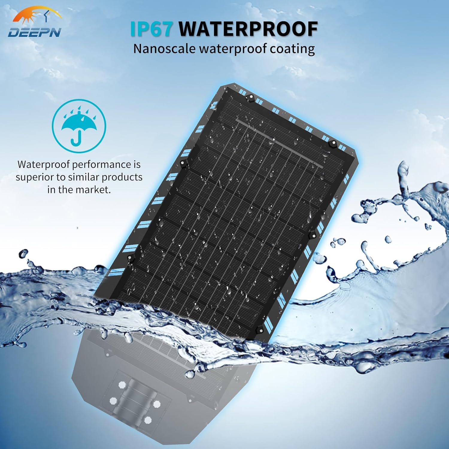 Deepn 2 Pack 7000W Commercial Solar Street Lights IP67 Waterproof LED Parking Lot Lights with Motion Sensor Dusk to Dawn
