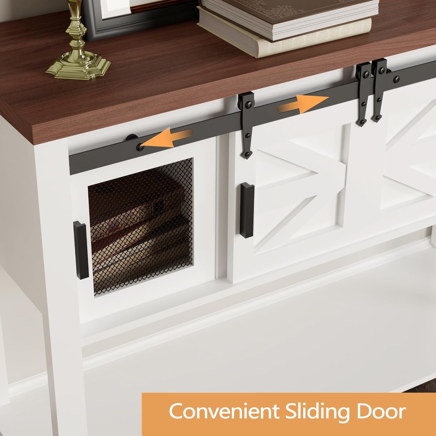 Der Rose Farmhouse Entryway Table with Sliding Barn Doors