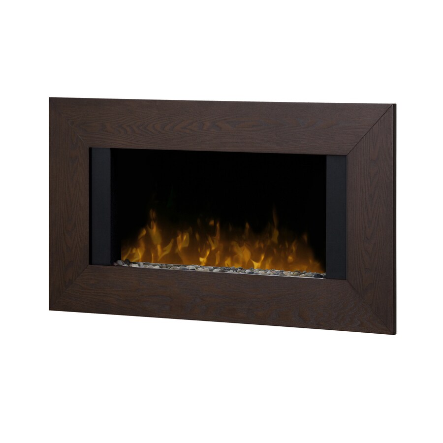 The rich earth tones of the stones that make up the ember bed coupled with the bold mocha frame create a wall-mount to captivate the soul