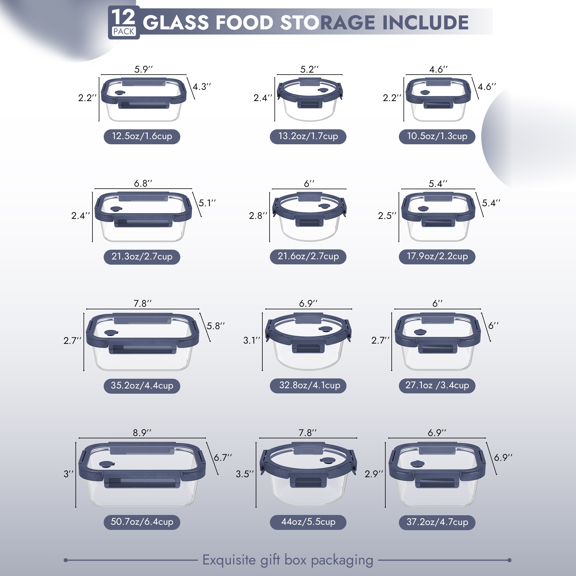Dovelina 12PC Glass Meal Food Storage Containers with Lids