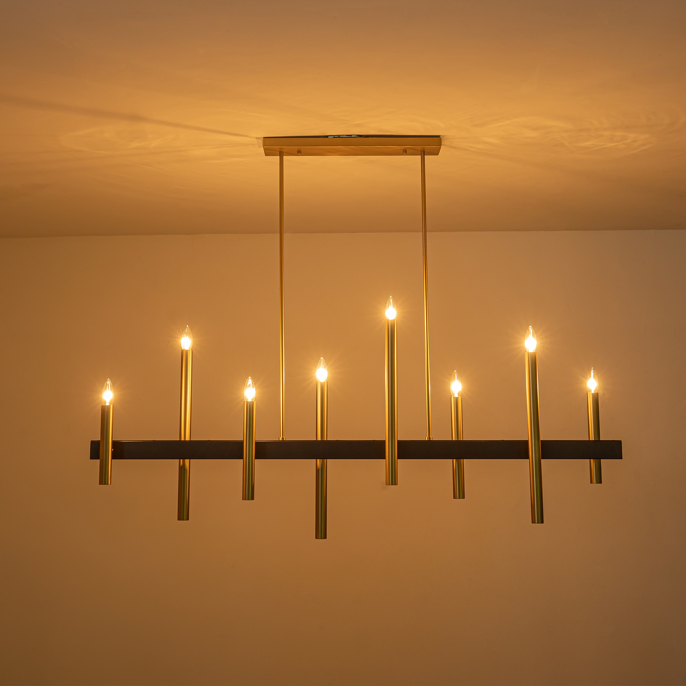 This oversized 8-light chandelier combines a classic feel with a sleek, modern construction to illuminate your space. It's crafted from metal with a rectangular canopy and two height-adjustable downrods. The design features a clean-lined supporting base with 8 asymmetric candle-like arms in diverse sizes, which is a renovation of the traditional one. Plus, with no lampshades, it allows you to showcase your choice of bulbs. At 56.69'' wide, it's great for larger rooms like your great room or main bedroom.