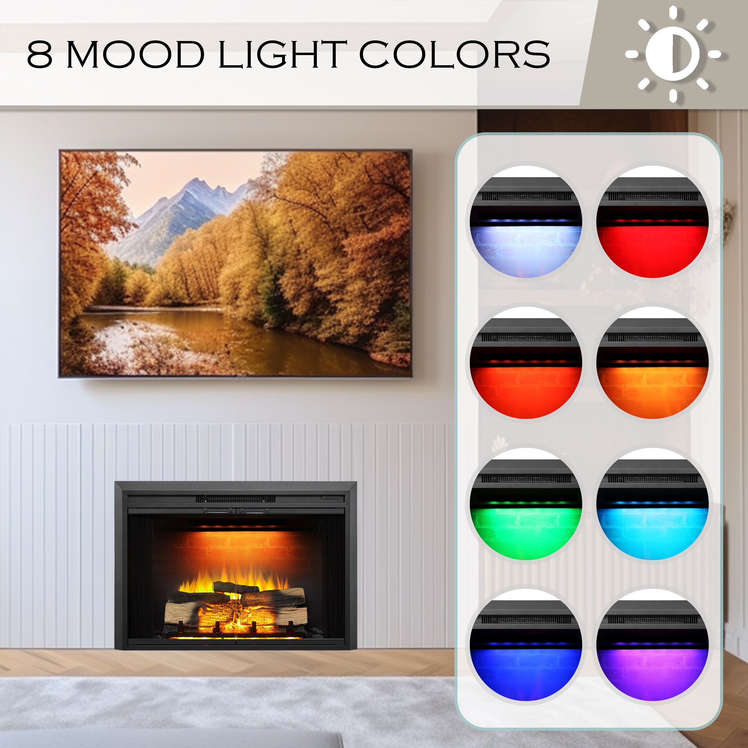 Realistic flam effects larger and more random flame with 4 brightness settings and 5-speed settings, change to celebratory, romantic, to peaceful to suit any mood or occasions can be used with or without heater and overheating protection