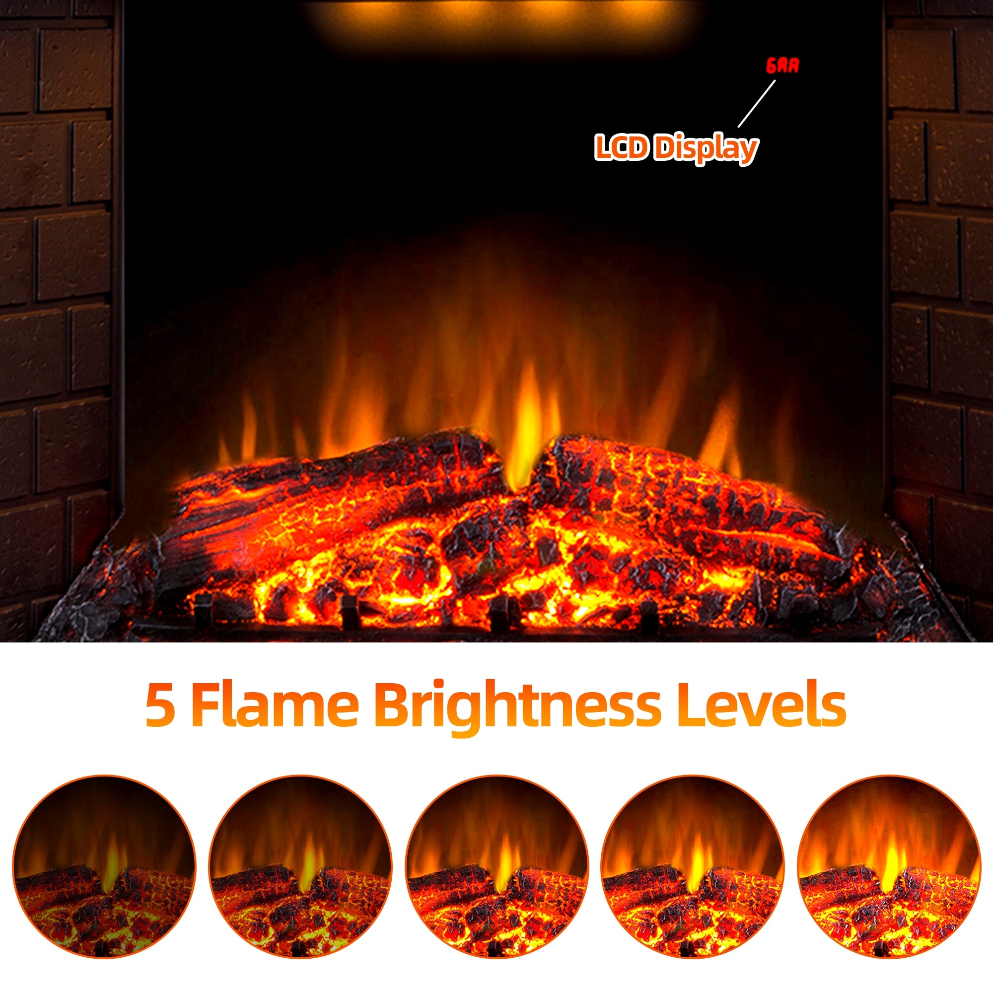 Multi Flame Modes: Created with life-like resin logs & ember bed with 3 color atmosphere light and 5 variable flame intensity; Three-sided interior brick wall retro style, great replacment for existing old fireplace, Ideal for home,office or any kinds of occasions.