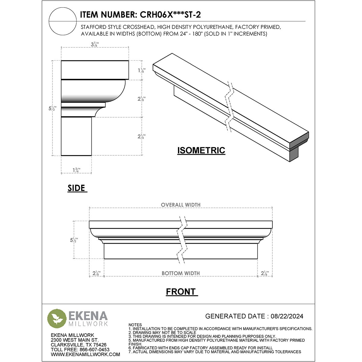 Item Description: Endurathane Stafford Crosshead, 53" Bottom Width x 57 1/4" Top Width x 5 1/2"H x 1 3/4"P, Factory Primed