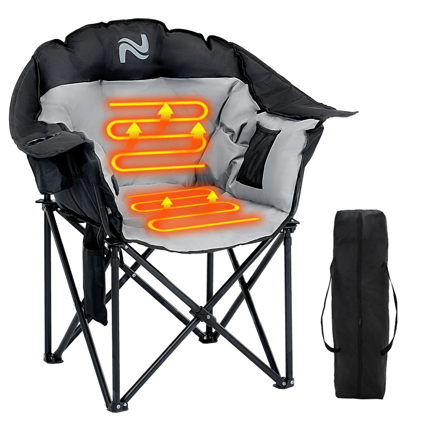 PORTABLE HEATED CAMPING CHAIR:Heated camping chair folds up compactly and comes with a carrying bag, making it easy to take with you on any adventure;The fully padded seat provide you an ultimate comfortable seating experience;