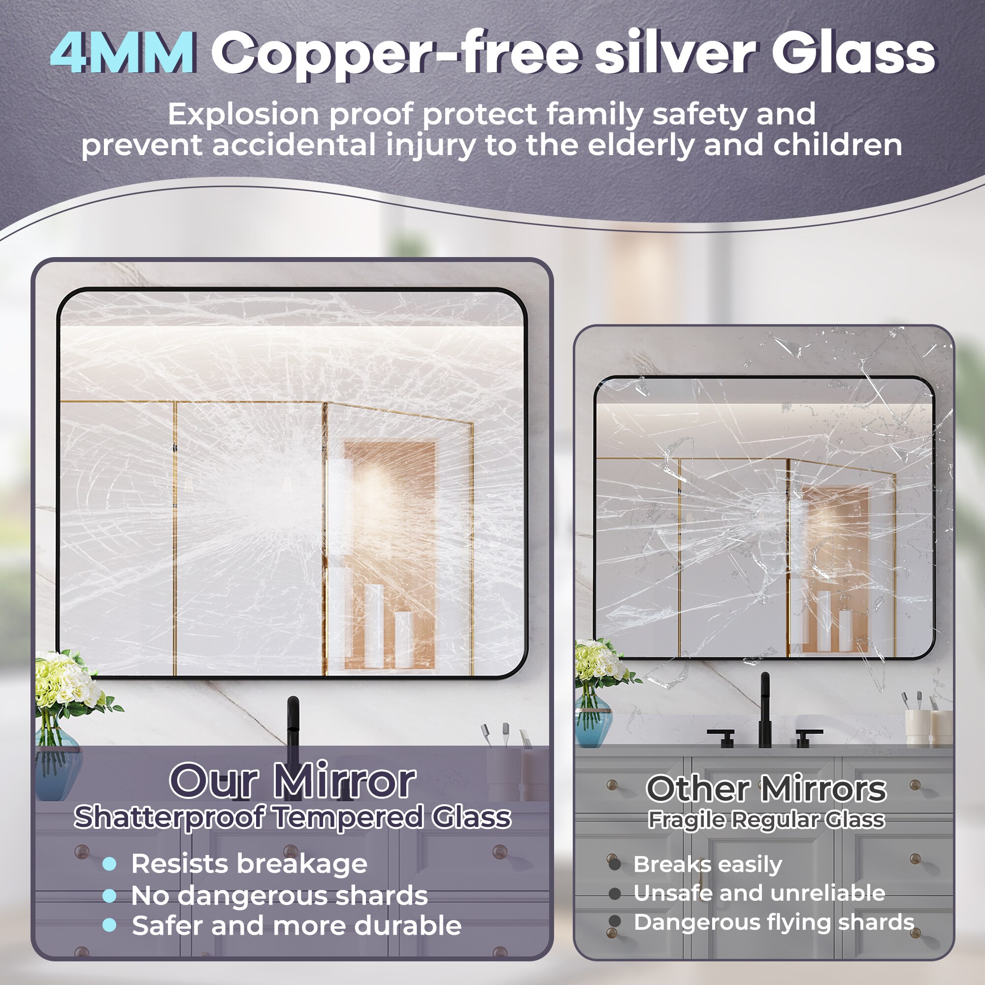 Besides, the black mirror is anti-stripping, anti-cracking and anti-water,and it is safer and more premium than traditional recessed frames