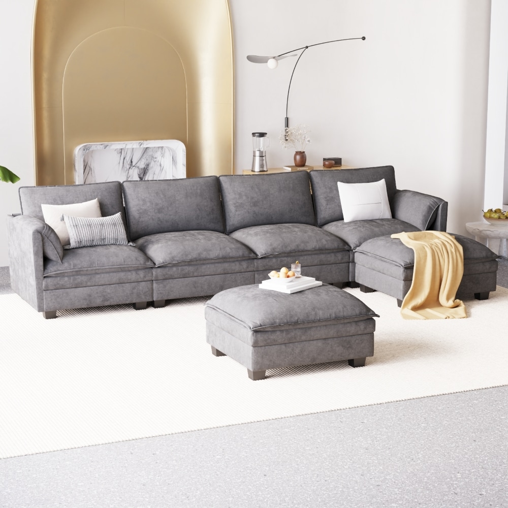 GDFStudio Modern U-shaped 6-Seater Sectional with Movable Ottoman Gray