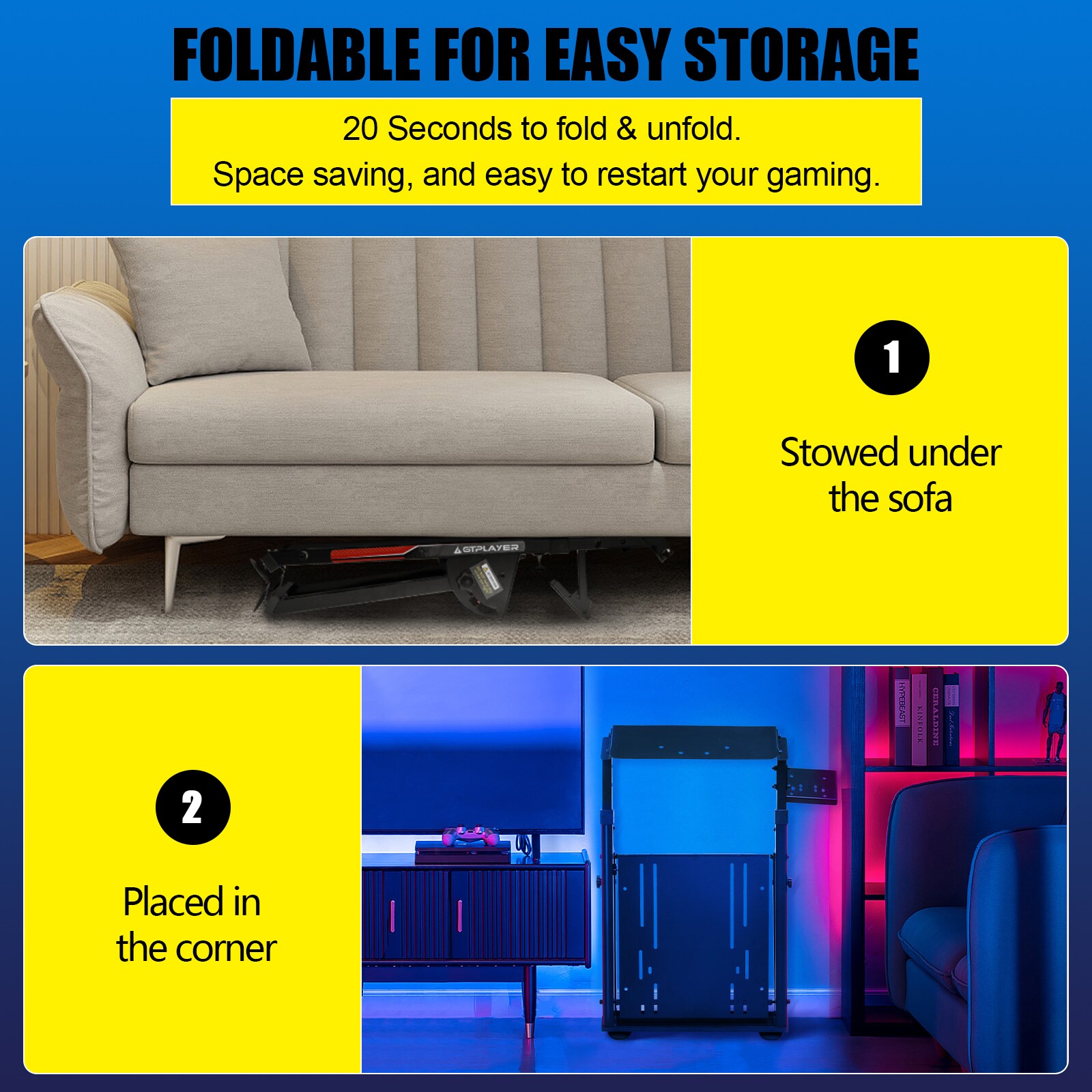 - After enjoying the game, you can easily fold this racing wheel stand and store it under your couch/bed or in the corner, making it a perfect choice for players with limited storage space,the compact design allows you to carry it anywhere to keep your gaming enthusiasm with you
