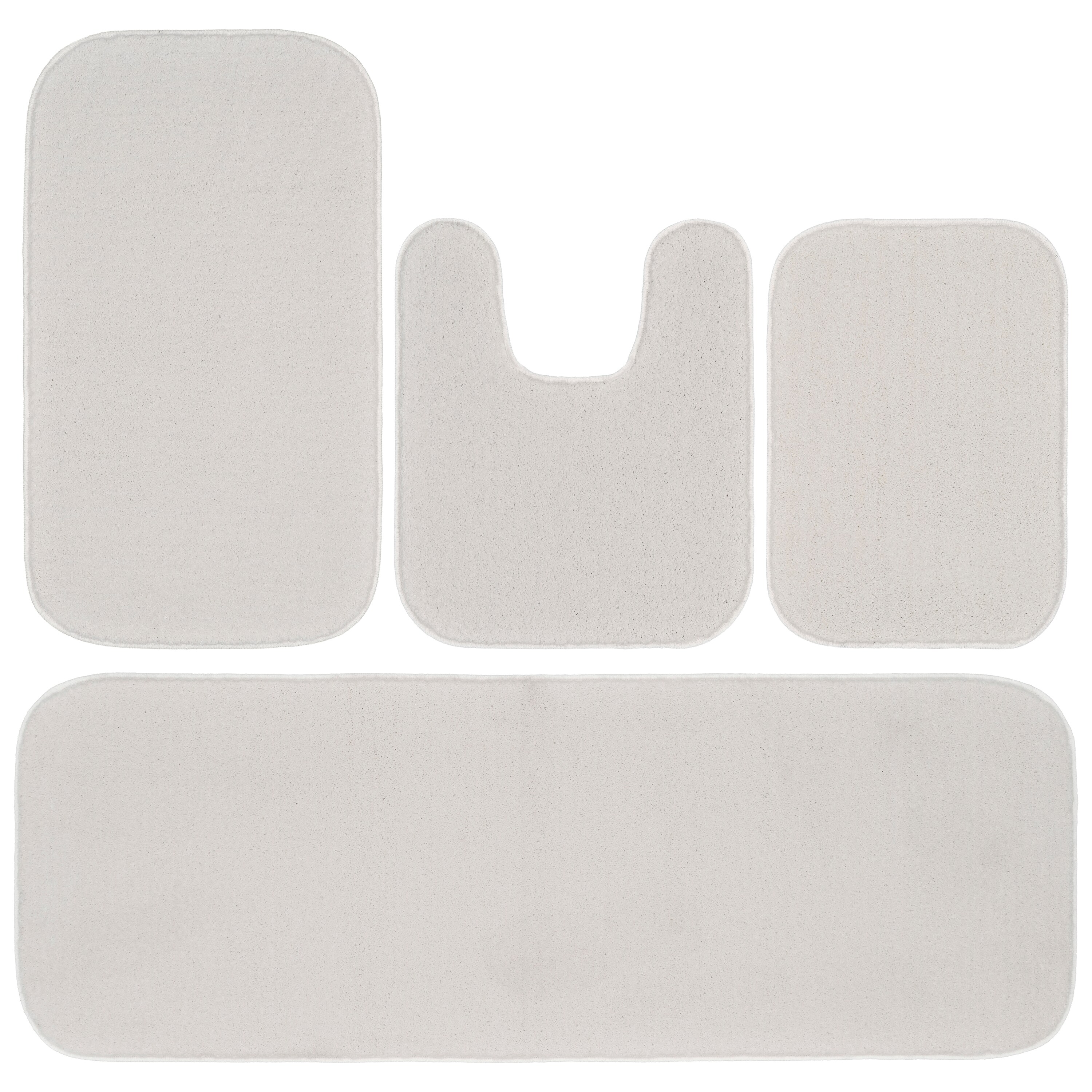 Set Includes: 21-in x 24-in Contour Rug, 17-in x 24-in Bath Rug, 20-in x 34-in Bath Rug, and a 22-in x 60-in Bath Runner Rug