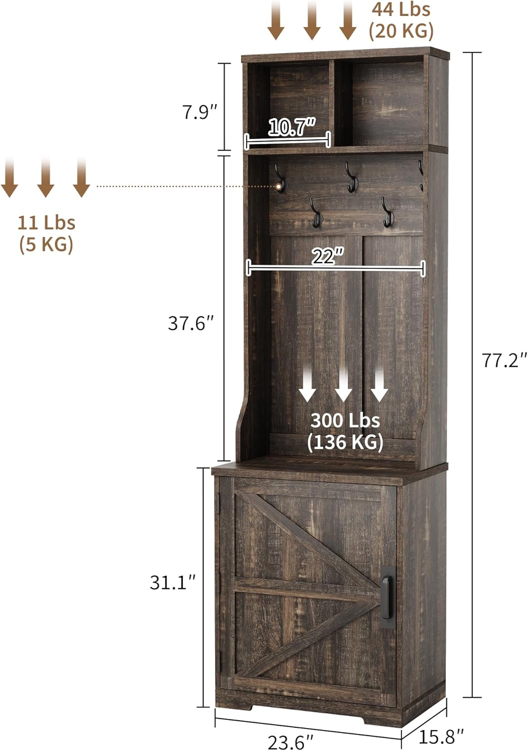 Garvee Farmhouse 3 in 1 Hall Tree Shoe Storage Bench 6 Hooks Standing Coat Rack Rustic Oak