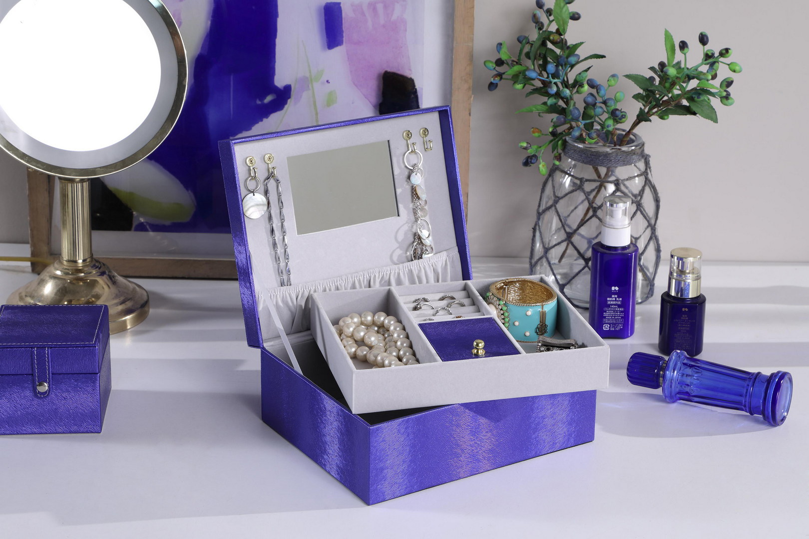 Built-In Mirror & Hidden Storage: The integrated interior mirror lets you style jewelry easily, while the gold knob compartment and mirror pouch add secret space for delicate tiny pieces.