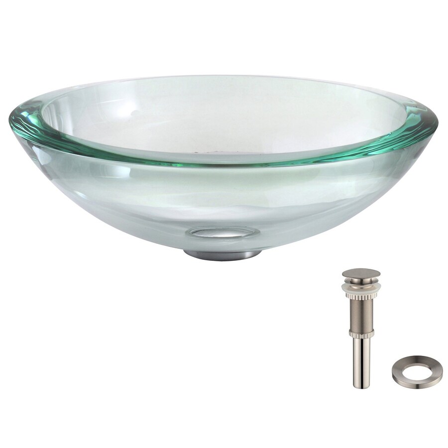 Kraus Clear Tempered Glass Above Counter Round Bathroom Sink with Drain Included (17-in x 17-in)
